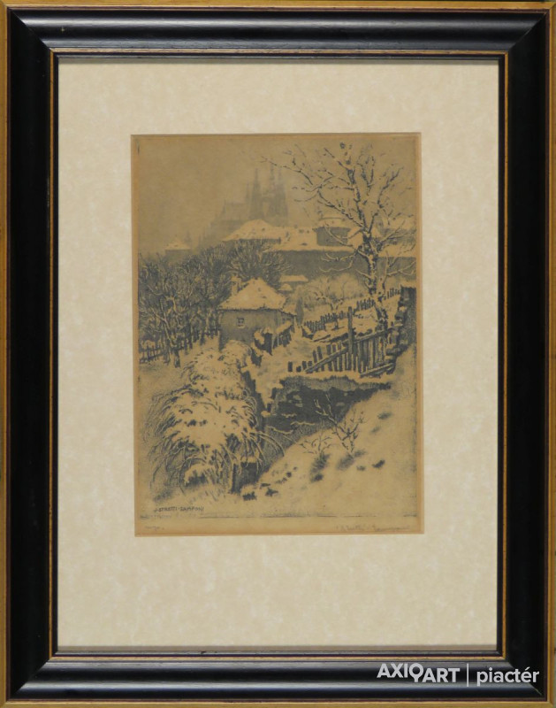 [FKC308/Bp204/129] A kép mérete: 20 x 26 cm keret nélkül. Készült: Rézkarc, Papír A kép Zádor István (Nagykikinda, 1882, Budapest, 1963) alkotása. Jelezve jobbra lent "Zádor István (ceruzával)" A festmény jó állapotban van. Keret: Új Magyar festők és grafikusok életrajzi lexikona I-II. Festő, grafikus. Huszonhat éves volt, amikor elhatározta, hogy fejét a művészetre adja. Éveken át tanulta a grafikai technikát. Budapesten, Párizsban és Firenzében folytatott tanulmányokat. Budapesten Olgyai Viktor volt a tanítómestere, Párizsban az École des Beaux Arts-on képezte magát. Nyáron a szolnoki művésztelepen, télen pedig Párizsban dolgozott, kisebb brüsszeli, antwerpeni kirándulásokkal tarkítva. 1910-ben Észak-Olaszországban tartózkodott, Firenzében az akadémián tanult. 1918-19-ben több forradalmi rajzriportot készített. A Tanácsköztársaság bukása után először Weimarba, majd Münchenbe emigrált, előbb a Bauhaus növendéke volt, majd ismét a rézkarc technikát tanulmányozta. Stuttgart volt az utolsó állomás. Csendéleteket, táj- és arcképeket, aktokat, enteriőröket festett, bár többnyire grafikával foglalkozott. Zádor igen nagy technikai tudással bírt a rézkarcolás művészetében. Főképp városképeket, hatásos architektúrákat varázsolt lapjaira. Egy német kiadó megbízásából sorozatban örökítette meg a Rajna-vidéki és tengerparti városokat, később a Ruhr-vidék gyárairól készített rézkarcokat. Neve ismertté vált mindenfelé. Olaszországba, Svájcba hívták meg kiállítani. Kiállítások, cserék, eladások, évkönyvek Angliától Japánig, Amerikáig. 1930-ban meghívták Hollandiába. Tájképeivel olyan sikert aratott, hogy megbízást kapott egy kiadótól 36 orvosprofesszor protréjának megrajzolásával, majd egy holland katonai szaklap bízta rá a tábornokok megörökítését. A Szinyei Társaság tagja, a Magyar Rézkarcolóművészek Egyesületének elnöke volt. 1918-ban "Ebédlő" című enteriőrje állami kis aranyérmet nyert. Illusztrációiért elnyerte a könyv-illusztrációs díjat, majd a Lipótvárosi Kaszinó díját. Később Kossuth-díjjal jutalmazták munkásságát. 1934-ben jelent meg ofszetnyomásban "Egy hadifestő emlékei" című albuma. Több olajképe, rézkarca és litográfiája található a Magyar Nemzeti Galériában. "Budapest 1945" című albuma a felszabadulás után "Egy fél évszázad rajzokban" című albuma 1959-ben jelent meg. (Éber, ML, Czeizing-Fehér: Művészek) Magyar festők és grafikusok életrajzi lexikona I-II. Műgyűjtők és kereskedők kézikönyve Kossuth-díjas festő, grafikus. Budapesten, Párizsban és Firenzében tanult. Párizsban az École des Beaux Arts-n képezte magát. A szolnoki művésztelep tagja volt. 1918-19-ben forradalmi rajzriportokat készített. A Tanácsköztársaság bukása után, először Weimarba, majd Münchenbe emigrált. Csendéleteket, táj- és arcképeket, valamint enteriőröket festett, bár többnyire grafikával foglalkozott. Olgyai Viktor volt a tanítómestere. Igen nagy technikai tudással bírt a rézkarcolás művészetében. Többnyire városképeket, hatásos architektúrákat varázsolt lapjaira. A Szinyei Társaság tagja, a Magyar Rézkarcolóművészek Egyesületének elnöke volt. 1918-ban "Ebédlő" című enteriőrje állami kis aranyérmet nyert. 1934-ben jelent meg offsetnyomásban "Egy hadifestő emlékei" című albuma. Több kiállítása volt a fővárosban. Számos olajképe, rézkarca és litográfiája van a Magyar Nemzeti Galériában. "Budapest 1945" című albuma a felszabadulás után, "Egy fél évszázad rajzokban" című albuma 1959-ben jelent meg. Kossuth-díjjal tüntették ki. (Éber, ML) Magyar festők és grafikusok adattára Festő, grafikus, Kossuth-díjas. Festményei enteriőrök, portrék és tájképek. Legismertebb művei rézkarcok és rajzok. Albumai: Budapest 1945; Egy fél évszázad rajzokban (Budapest, 1959). 1958-ban az Ernst Múzeumban volt életmű kiállítása. Irod.: Dénes Tibor: Zádor István. Képzőművészet, 1938., Zádor István és Grantner Jenő kiállítási katalógus. Ernst Múzeum. 1958. Művészeti lexikon I-IV. Festő és grafikus, Kossuht-díjas. Bp.-en, a párizsi École des Beaux-Arts-on és Firenzében tanult. A szolnoki művésztelep tagja volt. Festményei főleg intérieurök, tájak és kiváló karakterű portrék. Részletező, érzékeny rézkarcain líraian ábrázolta a Tisza menti tájat. 1918-19-ben forradalmi riportokat készített. A Tanácsköztársaság bukása után Weimarba, majd Münchenbe emigrált. 1929-től a Magyar Rézkarcoló Művészek Egyesületének elnöke volt. Számos kiállításon vett részt (1916, 1918, 1921, 1922), legutóbb 1958-ban az Ernst Múzeumban rendeztek nagy retrospektív kiállítást műveiből (Grantner Jenővel közösen). Budapest 1945 c. albuma a felszabadulás után, Egy fél évszázad rajzokban c. albuma 1959-ben jelent meg. Művészeti lexikon I-II. Festő és grafikus. Nagykikinda 1882. jan. 15. Budapesten, Párizsban és Firenzében tanult. Csendéleteket, tájképeket, arcképeket és interiöröket fest, bár elsősorban grafikával foglalkozik. Mestere a grafikában Olgyai Viktor volt. Technikai tudása a rézkarcolásban igen nagy, többnyire városképeket, hatásos architektúrákat varázsol lapjaira. Több olajképe, számos rézkarca és litográfiája van a Szépműv. Múz.-ban és a Főv. Képtárban. A Szinyei-Merse Pál Társaság tagja, a Magyar Rézkarcolóművészek Egyesületének elnöke. 1918. Ebédlő c. interiőrje állami kis aranyérmet kapott. 1916. a Nemzeti Szalónban, 1918., 1921. az Ernst-múzeumban volt kollektív kiállítása. 1934. jelent meg offsetnyomásban Egy hadifestő emlékei c. albuma. Kortárs magyar művészeti lexikon I-III. A középiskola elvégzése után 1906-ig banktisztviselő volt, de már 1901-t