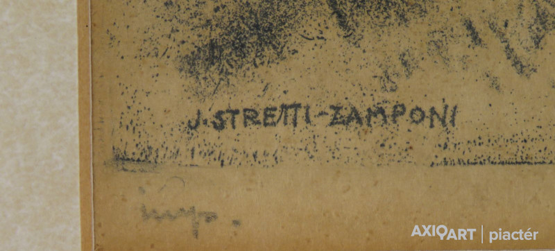 A kép J. Stretti Zamponi jelzéssel európai művész XX. század alkotása.