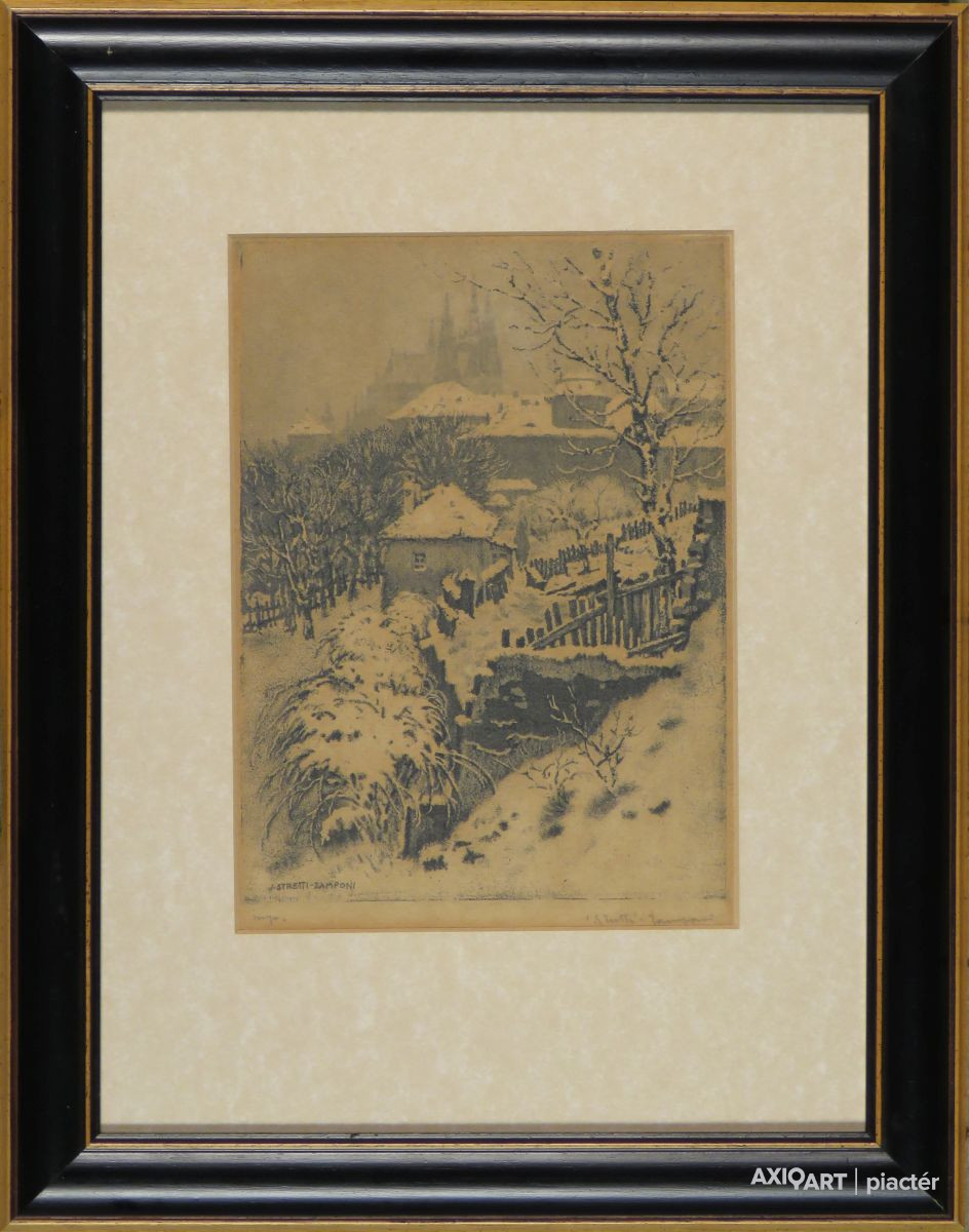 [FKC793/Bp206/12] A kép mérete: 20 x 14 cm keret nélkül. Készült: Rézkarc, Papír A kép J. Stretti Zamponi jelzéssel európai művész XX. század alkotása. Jelezve lent "Imp., J. Stretti Zamponi (ceruzával)" A festmény jó állapotban van. Keret: Ép