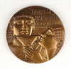 Eredeti tokjában található feliratos, kétoldalas, bronz plakett, emlékplakett.