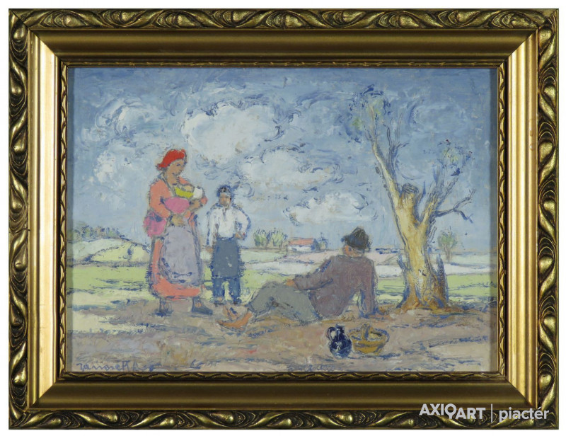 [FKB615/Bp93/71] A kép mérete: 23 x 31 cm keret nélkül. Készült: Olaj, Karton A kép Jancsek Antal (Budapest, 1907) alkotása. Jelezve balra lent "Jancsek A" A festmény jó állapotban van. Keret: Ép Magyar festők és grafikusok életrajzi lexikona I-II. Festő. Podolini-Volkman Artúr magániskolájában, majd a budapesti Képzőművészeti Főiskolán Glatz Oszkár, Dudits Andor, Vaszary János irányításával tanult. 1931-től szerepelt hazai és külföldi tárlatokon. Figurális és tájképeiből 1932-ben a Nemzeti Szalonban rendezett gyűjteményes kiállítást. Több képét őrzik európai képtárakban és a Magyar Nemzeti Galériában. (ML, Éber) Magyar festők és grafikusok adattára Podolini-Volkman Artur magániskolájában, majd a Képzőművészeti Főiskolán Glatz Oszkár, Dudits Andor és Vaszary János mellett tanult. 1931-től szerepel hazai és külföldi tárlatokon. Több képét őrzik európai képtárakban és a Magyar Nemzeti Galériában. - ML Magyar festők és grafikusok életrajzi lexikona I-II. Műgyűjtők és kereskedők kézikönyve Festő. Podolini-Volkman Artúr magániskolájában, majd a bp.-i Képzőművészeti Főiskolán Glatz Oszkár, Dudics Andor, Vaszary János irányításával tanul. 1931-től szerepelt hazai és külföldi tárlatokon. Figurális és tájképeiből 1932-ben a Nemzeti Szalonban rendezett gyűjteményes kiállítást. Több képét őrzik európai képtárakban és az MNG-ban. (ML, Éber) Művészeti lexikon I-IV. Festő. Podolini-Volkman Artúr magániskolájában, majd a Képzőművészeti Főiskolán Glatz Oszkár, Dudits Andor és Vaszary János mellett tanult. 1931-től szerepel hazai és külföldi tárlatokon. Több képét őrzik európai képtárakban és a Nemz. Gal.-ban.