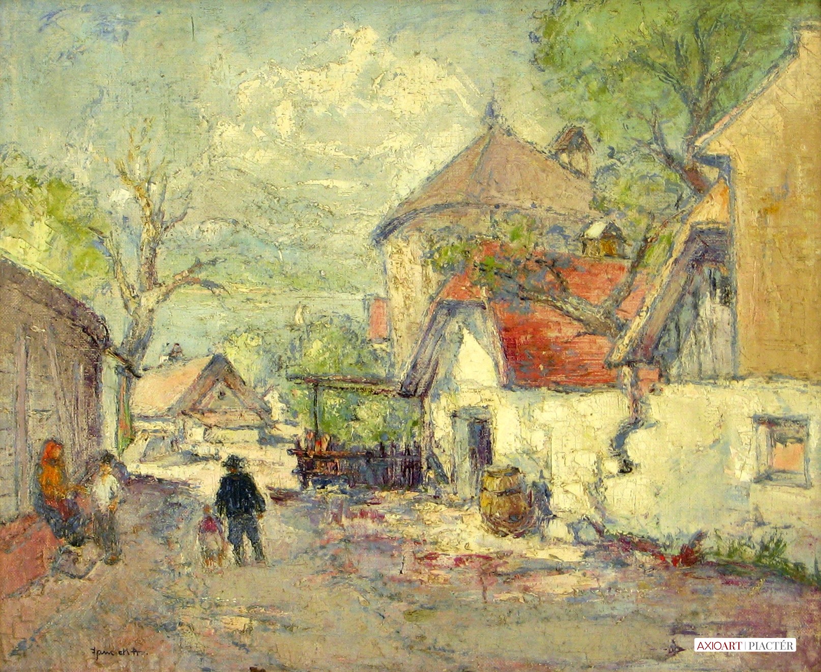 [FK1841/FL-2] A kép mérete: 50,5 x 60,5 cm keret nélkül. Készült: Olaj, Vászon A kép Jancsek Antal (Budapest, 1907) alkotása. Jelezve Balra lent "Jancsek A." A festmény jó állapotban van. Keret: Ép Magyar festők és grafikusok életrajzi lexikona I-II. Festő. Podolini-Volkman Artúr magániskolájában, majd a budapesti Képzőművészeti Főiskolán Glatz Oszkár, Dudits Andor, Vaszary János irányításával tanult. 1931-től szerepelt hazai és külföldi tárlatokon. Figurális és tájképeiből 1932-ben a Nemzeti Szalonban rendezett gyűjteményes kiállítást. Több képét őrzik európai képtárakban és a Magyar Nemzeti Galériában. (ML, Éber) Magyar festők és grafikusok adattára Podolini-Volkman Artur magániskolájában, majd a Képzőművészeti Főiskolán Glatz Oszkár, Dudits Andor és Vaszary János mellett tanult. 1931-től szerepel hazai és külföldi tárlatokon. Több képét őrzik európai képtárakban és a Magyar Nemzeti Galériában. - ML Magyar festők és grafikusok életrajzi lexikona I-II. Műgyűjtők és kereskedők kézikönyve Festő. Podolini-Volkman Artúr magániskolájában, majd a bp.-i Képzőművészeti Főiskolán Glatz Oszkár, Dudics Andor, Vaszary János irányításával tanul. 1931-től szerepelt hazai és külföldi tárlatokon. Figurális és tájképeiből 1932-ben a Nemzeti Szalonban rendezett gyűjteményes kiállítást. Több képét őrzik európai képtárakban és az MNG-ban. (ML, Éber) Művészeti lexikon I-IV. Festő. Podolini-Volkman Artúr magániskolájában, majd a Képzőművészeti Főiskolán Glatz Oszkár, Dudits Andor és Vaszary János mellett tanult. 1931-től szerepel hazai és külföldi tárlatokon. Több képét őrzik európai képtárakban és a Nemz. Gal.-ban.