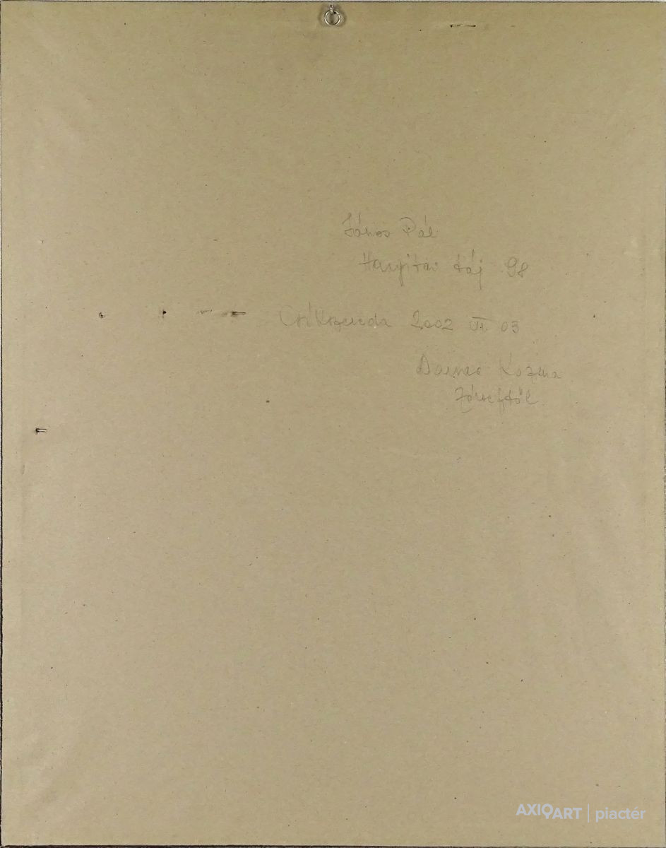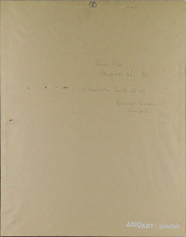 A festmény hátoldalán a Képcsarnokvállalat címkéje található.