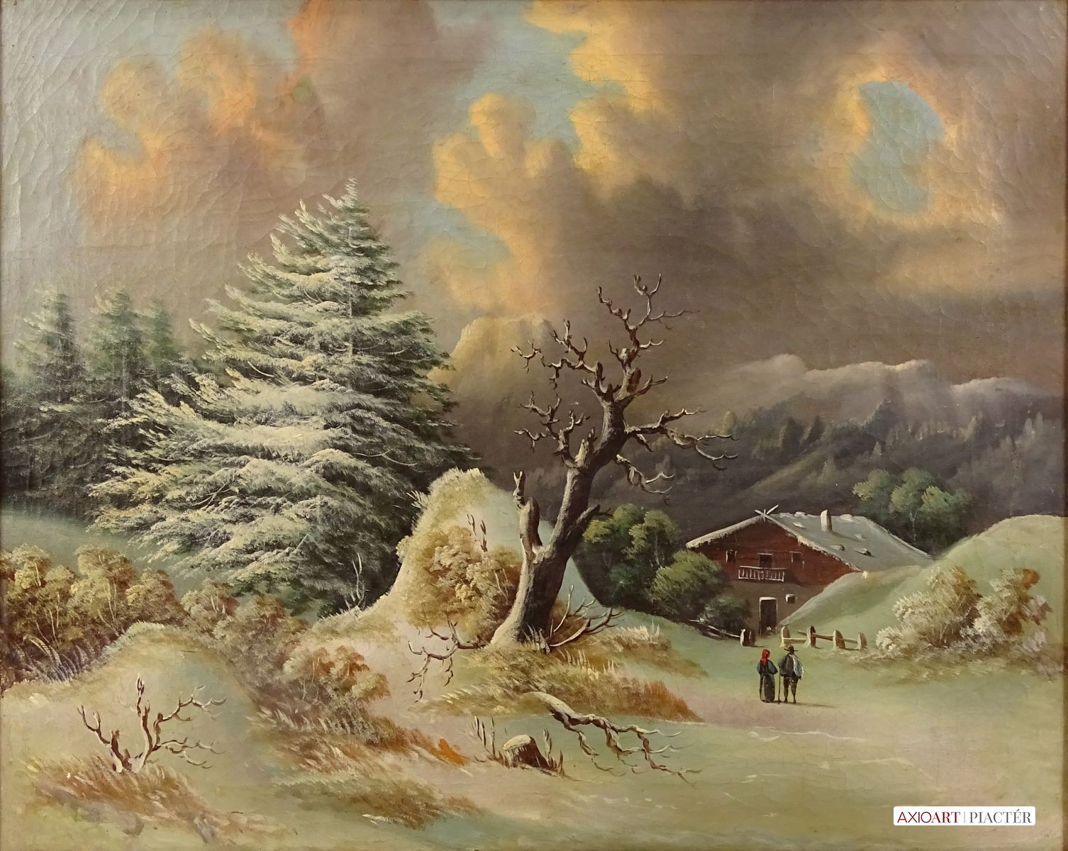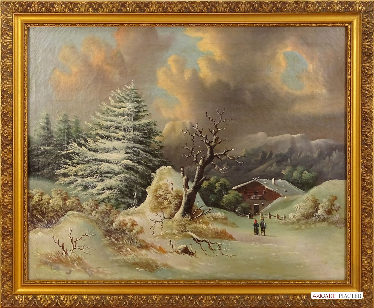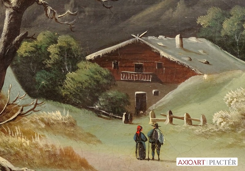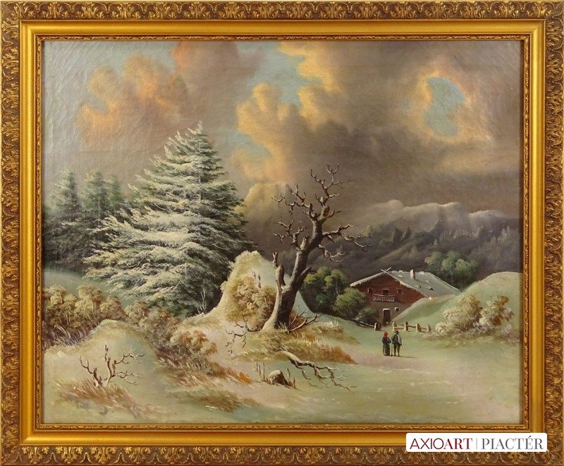 Antik osztrák olaj vászon festmény, szép arany keretben, az XIX.-XX. század fordulóról.
