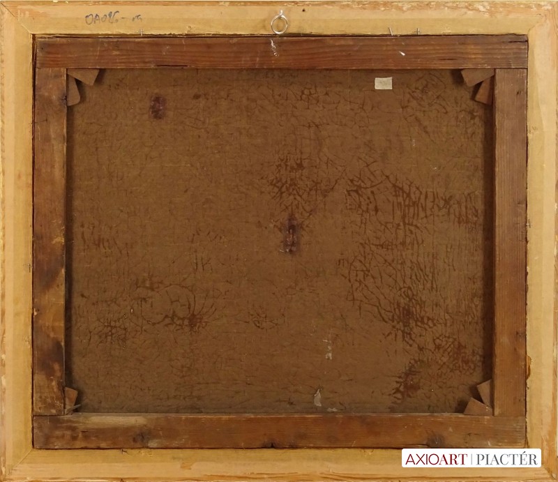 [FK0037/Z018] A kép mérete: 50 x 70 cm keret nélkül. Készült: Olaj, Vászon A kép Paizs László (Szentpéterúr, 1935) alkotása. Jelezve Jobbra lent "P. L." A festmény jó állapotban van. Keret: Ép A festmény hátoldalán a Képcsarnokvállalat címkéje található. Magyar festők és grafikusok életrajzi lexikona I-II. Festő. Tanulmányait a budapesti Iparművészeti Főiskolán végezte 1959-ben. Z. Gács György, Rákosy Zoltán és Szentiványi Lajos növendéke volt. A '60-as évek első felében hagyományosabb felfogású olajképeket festett, mozaikokat, freskókat, utóbb a pop-art körébe tartozó, a francia Arman munkáival rokon műveket alkotott. 1961 óta kiállító művész. Egyéni (Fényes Adolf Terem, Csók Galéria, Műcsarnok, Magyar Nemzeti Galéria, Halászbástya, Bástya Galéria, Vigadó Galéria, Budapest Galéria, Győr, Szombathely, Szeged, Zalaegerszeg, Duisburg, Aix-en-Provence, stb). és vegyes (Ernst Múzeum, Műcsarnok, Óbuda Galéria, Magyar Nemzeti Galéria, Csók Galéria, Vigadó Galéria, Székesfehérvár, Kaposvár, Pécs, Hódmezővásárhely, Firenze, Milano, Padova, Nápoly, Velence, Düsseldorf, Aachen, Genf, stb) tárlatokon vett részt. 1980-ban Munkácsy-díjjal jutalmazták, 1988-ban Érdemes Művész kitüntető elismerésben részesült. Munkáit őrzi a Magyar Nemzeti Galéria, a Fővárosi Képtár, a szombathelyi képtár, a pécsi Janus P. Múzeum, a székesfehérvári István Király Múzeum és a dunaszerdahelyi Kortárs Magyar Galéria. (H.B.: Műv, 1972/4, K.Gy.: Műv. 1977/2, K.G.: Műv. 1978/10, M.L.: Műv, 1983/5, R.G.: Műv, 1987/9, Sz.Gy.: Új Műv. 1995/4, MK) Magyar festők és grafikusok életrajzi lexikona I-II. Műgyűjtők és kereskedők kézikönyve Festő. Tanulmányait a bp.-i Iparművészeti Főiskolán végezte. Mozaikokat ferskókat, utóbb a pop-art körébe tartozó, a francia Arman műveivel rokon műveket alkotott. Mozaikok: a Szegedi Megyei Tanács, a Pécsi Óvoda, a Gödöllői Agrártudományi Egyetem. Freskók: Budapest - Csatárka úti Gyermekotthon. 1971-ben a Fényes Adolf Teremben volt kiállítása, 1983-ban pedig a szegedi Móra Ferenc Múzeumban nagyszabású tárlatokon mutatta be munkáit. 1988-ban érdemes művész kitüntető elismerésben részesült. (MK) Magyar festők és grafikusok adattára Az Iparművészeti Főiskolán végzett 1959-ben. Mozaikokat (Szeged, Megyei Tanács; Pécs, Óvoda; Gödöllő, Agrártudományi Egyetem), freskókat (Budapest, Csatárka úti Gyermekotthon), újabban a pop art körébe tartozó, a francia Arman műveivel rokon műveket alkotott. 1971-ben a Fényes Adolf Teremben nyílt kiállítása. 1983 februárjában a szegedi Móra Ferenc Múzeumban megrendezett nagyszabású tárlaton mutatta be alkotásait. 1988-ban érdemes művész kitüntető elismerésben részesült. - MK Művészeti lexikon I-IV. (Szentpéterur, 1935. dec. 26.- ): festő. Az Iparművészeti Főiskolán 1959-ben végzett Rákosy Zoltán, Z. Gách György és Szentiványi Lajos növendékeként. Épületdiszítő mozaikokat, (Szeged, Megyei Tanács, 1961; Pécs, Óvoda, 1964), műanyagfreskókat (Bp., Csatárka úti Gyermekotthon, 1964) és gobelinterveket készít. Kortárs magyar művészeti lexikon I-III. Festő, szobrász, grafikus. 1959: MIF, mesterei: Z. Gács György, Rákosy Zoltán, Szentiványi Lajos. 1980: Munkácsy-díj; 1988: érdemes művész. Főiskolás éveinek második felében, majd azt követően számos murális munka kivitelezésében vett részt, Fónyi Géza, Konecsni György, Z. Gács György, Rákosi Zoltán és Domanovszky Endre mellett dolgozva. A 60-as évek első felének hagyományosabb fölfogású olajképeket festett. 1964-ben a Velencei B.-n megismerkedett az amerikai pavilonban a pop art Európában akkor még újnak számító törekvésével, és részben ez inspirálta, hogy 1967-ben textil, fém, bőr anyagú "varrottas" képeket küldjön az FKS éves tárlatára; a megnyitó előtt többek között az ő munkáit is eltávolították a falról. A 70-es években pop art-os objekteket (A trónörököspár politikai gyilkosság áldozata lett, 1970, plexiüveg, újság, szarvasbogarak), majd konstruktív, átlátszó plexiüveg plasztikákat készített belső fénytörő határfelületekkel. A 80-as években készültek az anyagában színezett, konstruktív, nagyméretű poliészter szobrai, majd színes poliészter táblaképeket alkotott, mesterségesen roncsolt felületekkel, mintha régészeti leletek vagy atomtámadás utáni festmény-szurrogátumok lennének. Ekkor kezdett organikus plaszikájú bronzszobrokat is mintázni. A 90-es években, a táblaképek és szobrok mellett nagyméretű, egyedi grafikákat készített, formavilágában némileg a roncsolt táblaképekből kiindulva, de szinte kizárólag az emberi alakból elvonatkoztatott torzókat megjelenítve. Ek: 1966: Művészklub, Győr; 1971: Fényes A. T.; 1972: Bercsényi 28-30 G.; 1973: BME B-épület; 1976: Csók G.; 1977: G. Hildebrandt, Duisburg (NSZK); 1979: Bástya G., Halászbástya; Helyőrségi Műv. H., Nagyatád; József A. Műv. Közp., Szeged; Göcsej M., Zalaegerszeg; 1982: Bezzegh G., Küsnacht (CH); 1983: Móra F. M., Szeged; 1987: Műcsarnok (kat.); MNG; 1988: Pandora G., Badacsonytomaj; 1989: Parktheatter, Iserlohn (NSZK); Qualitas G.; Hevesi S. Színház, Zalaegerszeg; 1990: Vasarely Fondation (Ferdinánd Judittal, Fóth Ernővel), Aix-en-Provence (FR); 1994: Vigadó G.; 1997: Pest Center G.; 1998: Budapest G. (kat.); 1999: Pest Center G. (kat); G. Arcis, Sárvár; MMA, Bp.; 2001: SZK, Szhely; Ernst M. (kat.) Vcsk: 1961, 1964, 1966: FKS, Ernst M.; 1962: 9. Magyar Képzőműv. kiállítás, Műcsarnok; 1967: Mai magyar festészet, Új-Delhi; 1969: Vas megyei művészek, Savaria M., Szhely; V. Orsz. Grafikai B., Miskolc; 1971: Új művek, Műcsarnok; 1972: Fiatal művészek Budapestről. Likovni Salon, Újvidék (YU); 1972, 1973: Balatonboglár