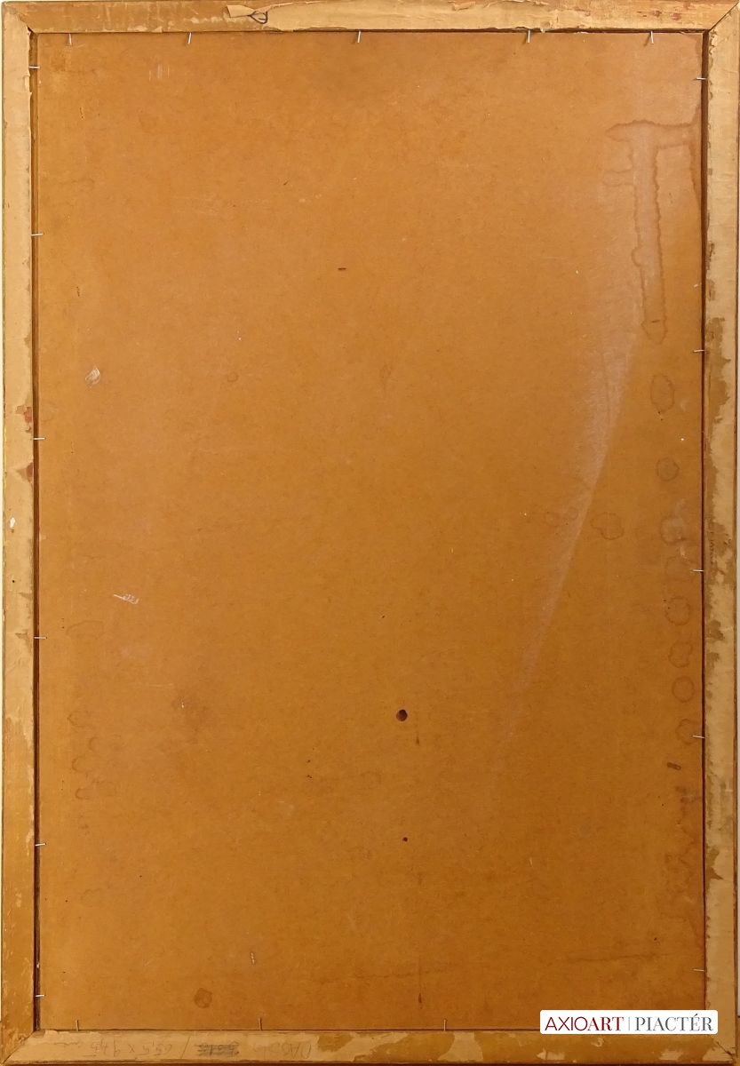 [FK0037/Z018] A kép mérete: 50 x 70 cm keret nélkül. Készült: Olaj, Vászon A kép Paizs László (Szentpéterúr, 1935) alkotása. Jelezve Jobbra lent "P. L." A festmény jó állapotban van. Keret: Ép A festmény hátoldalán a Képcsarnokvállalat címkéje található. Magyar festők és grafikusok életrajzi lexikona I-II. Festő. Tanulmányait a budapesti Iparművészeti Főiskolán végezte 1959-ben. Z. Gács György, Rákosy Zoltán és Szentiványi Lajos növendéke volt. A '60-as évek első felében hagyományosabb felfogású olajképeket festett, mozaikokat, freskókat, utóbb a pop-art körébe tartozó, a francia Arman munkáival rokon műveket alkotott. 1961 óta kiállító művész. Egyéni (Fényes Adolf Terem, Csók Galéria, Műcsarnok, Magyar Nemzeti Galéria, Halászbástya, Bástya Galéria, Vigadó Galéria, Budapest Galéria, Győr, Szombathely, Szeged, Zalaegerszeg, Duisburg, Aix-en-Provence, stb). és vegyes (Ernst Múzeum, Műcsarnok, Óbuda Galéria, Magyar Nemzeti Galéria, Csók Galéria, Vigadó Galéria, Székesfehérvár, Kaposvár, Pécs, Hódmezővásárhely, Firenze, Milano, Padova, Nápoly, Velence, Düsseldorf, Aachen, Genf, stb) tárlatokon vett részt. 1980-ban Munkácsy-díjjal jutalmazták, 1988-ban Érdemes Művész kitüntető elismerésben részesült. Munkáit őrzi a Magyar Nemzeti Galéria, a Fővárosi Képtár, a szombathelyi képtár, a pécsi Janus P. Múzeum, a székesfehérvári István Király Múzeum és a dunaszerdahelyi Kortárs Magyar Galéria. (H.B.: Műv, 1972/4, K.Gy.: Műv. 1977/2, K.G.: Műv. 1978/10, M.L.: Műv, 1983/5, R.G.: Műv, 1987/9, Sz.Gy.: Új Műv. 1995/4, MK) Magyar festők és grafikusok életrajzi lexikona I-II. Műgyűjtők és kereskedők kézikönyve Festő. Tanulmányait a bp.-i Iparművészeti Főiskolán végezte. Mozaikokat ferskókat, utóbb a pop-art körébe tartozó, a francia Arman műveivel rokon műveket alkotott. Mozaikok: a Szegedi Megyei Tanács, a Pécsi Óvoda, a Gödöllői Agrártudományi Egyetem. Freskók: Budapest - Csatárka úti Gyermekotthon. 1971-ben a Fényes Adolf Teremben volt kiállítása, 1983-ban pedig a szegedi Móra Ferenc Múzeumban nagyszabású tárlatokon mutatta be munkáit. 1988-ban érdemes művész kitüntető elismerésben részesült. (MK) Magyar festők és grafikusok adattára Az Iparművészeti Főiskolán végzett 1959-ben. Mozaikokat (Szeged, Megyei Tanács; Pécs, Óvoda; Gödöllő, Agrártudományi Egyetem), freskókat (Budapest, Csatárka úti Gyermekotthon), újabban a pop art körébe tartozó, a francia Arman műveivel rokon műveket alkotott. 1971-ben a Fényes Adolf Teremben nyílt kiállítása. 1983 februárjában a szegedi Móra Ferenc Múzeumban megrendezett nagyszabású tárlaton mutatta be alkotásait. 1988-ban érdemes művész kitüntető elismerésben részesült. - MK Művészeti lexikon I-IV. (Szentpéterur, 1935. dec. 26.- ): festő. Az Iparművészeti Főiskolán 1959-ben végzett Rákosy Zoltán, Z. Gách György és Szentiványi Lajos növendékeként. Épületdiszítő mozaikokat, (Szeged, Megyei Tanács, 1961; Pécs, Óvoda, 1964), műanyagfreskókat (Bp., Csatárka úti Gyermekotthon, 1964) és gobelinterveket készít. Kortárs magyar művészeti lexikon I-III. Festő, szobrász, grafikus. 1959: MIF, mesterei: Z. Gács György, Rákosy Zoltán, Szentiványi Lajos. 1980: Munkácsy-díj; 1988: érdemes művész. Főiskolás éveinek második felében, majd azt követően számos murális munka kivitelezésében vett részt, Fónyi Géza, Konecsni György, Z. Gács György, Rákosi Zoltán és Domanovszky Endre mellett dolgozva. A 60-as évek első felének hagyományosabb fölfogású olajképeket festett. 1964-ben a Velencei B.-n megismerkedett az amerikai pavilonban a pop art Európában akkor még újnak számító törekvésével, és részben ez inspirálta, hogy 1967-ben textil, fém, bőr anyagú "varrottas" képeket küldjön az FKS éves tárlatára; a megnyitó előtt többek között az ő munkáit is eltávolították a falról. A 70-es években pop art-os objekteket (A trónörököspár politikai gyilkosság áldozata lett, 1970, plexiüveg, újság, szarvasbogarak), majd konstruktív, átlátszó plexiüveg plasztikákat készített belső fénytörő határfelületekkel. A 80-as években készültek az anyagában színezett, konstruktív, nagyméretű poliészter szobrai, majd színes poliészter táblaképeket alkotott, mesterségesen roncsolt felületekkel, mintha régészeti leletek vagy atomtámadás utáni festmény-szurrogátumok lennének. Ekkor kezdett organikus plaszikájú bronzszobrokat is mintázni. A 90-es években, a táblaképek és szobrok mellett nagyméretű, egyedi grafikákat készített, formavilágában némileg a roncsolt táblaképekből kiindulva, de szinte kizárólag az emberi alakból elvonatkoztatott torzókat megjelenítve. Ek: 1966: Művészklub, Győr; 1971: Fényes A. T.; 1972: Bercsényi 28-30 G.; 1973: BME B-épület; 1976: Csók G.; 1977: G. Hildebrandt, Duisburg (NSZK); 1979: Bástya G., Halászbástya; Helyőrségi Műv. H., Nagyatád; József A. Műv. Közp., Szeged; Göcsej M., Zalaegerszeg; 1982: Bezzegh G., Küsnacht (CH); 1983: Móra F. M., Szeged; 1987: Műcsarnok (kat.); MNG; 1988: Pandora G., Badacsonytomaj; 1989: Parktheatter, Iserlohn (NSZK); Qualitas G.; Hevesi S. Színház, Zalaegerszeg; 1990: Vasarely Fondation (Ferdinánd Judittal, Fóth Ernővel), Aix-en-Provence (FR); 1994: Vigadó G.; 1997: Pest Center G.; 1998: Budapest G. (kat.); 1999: Pest Center G. (kat); G. Arcis, Sárvár; MMA, Bp.; 2001: SZK, Szhely; Ernst M. (kat.) Vcsk: 1961, 1964, 1966: FKS, Ernst M.; 1962: 9. Magyar Képzőműv. kiállítás, Műcsarnok; 1967: Mai magyar festészet, Új-Delhi; 1969: Vas megyei művészek, Savaria M., Szhely; V. Orsz. Grafikai B., Miskolc; 1971: Új művek, Műcsarnok; 1972: Fiatal művészek Budapestről. Likovni Salon, Újvidék (YU); 1972, 1973: Balatonboglár