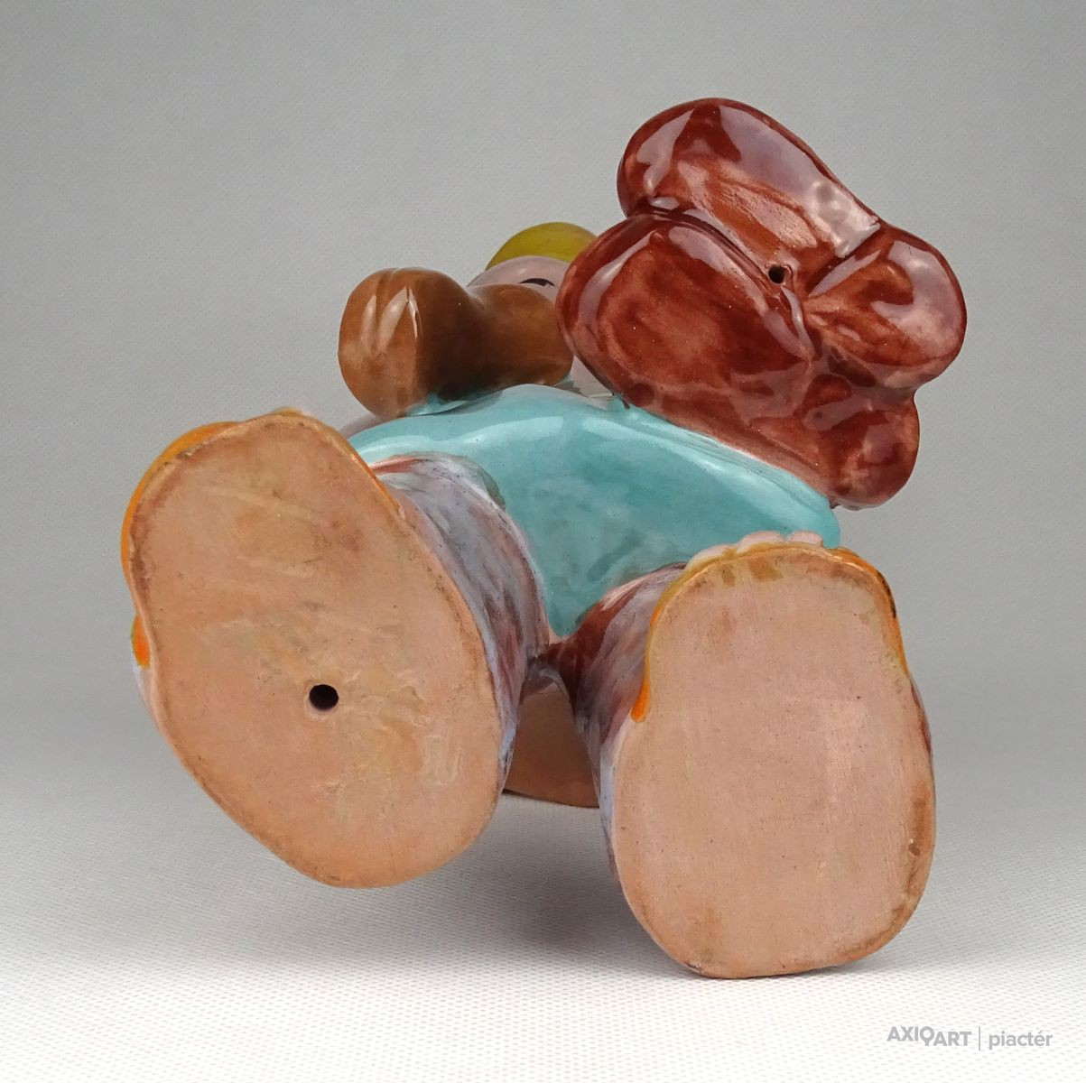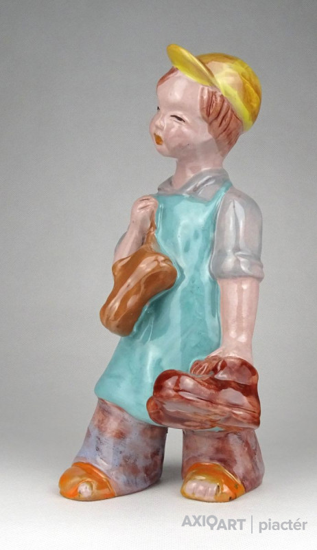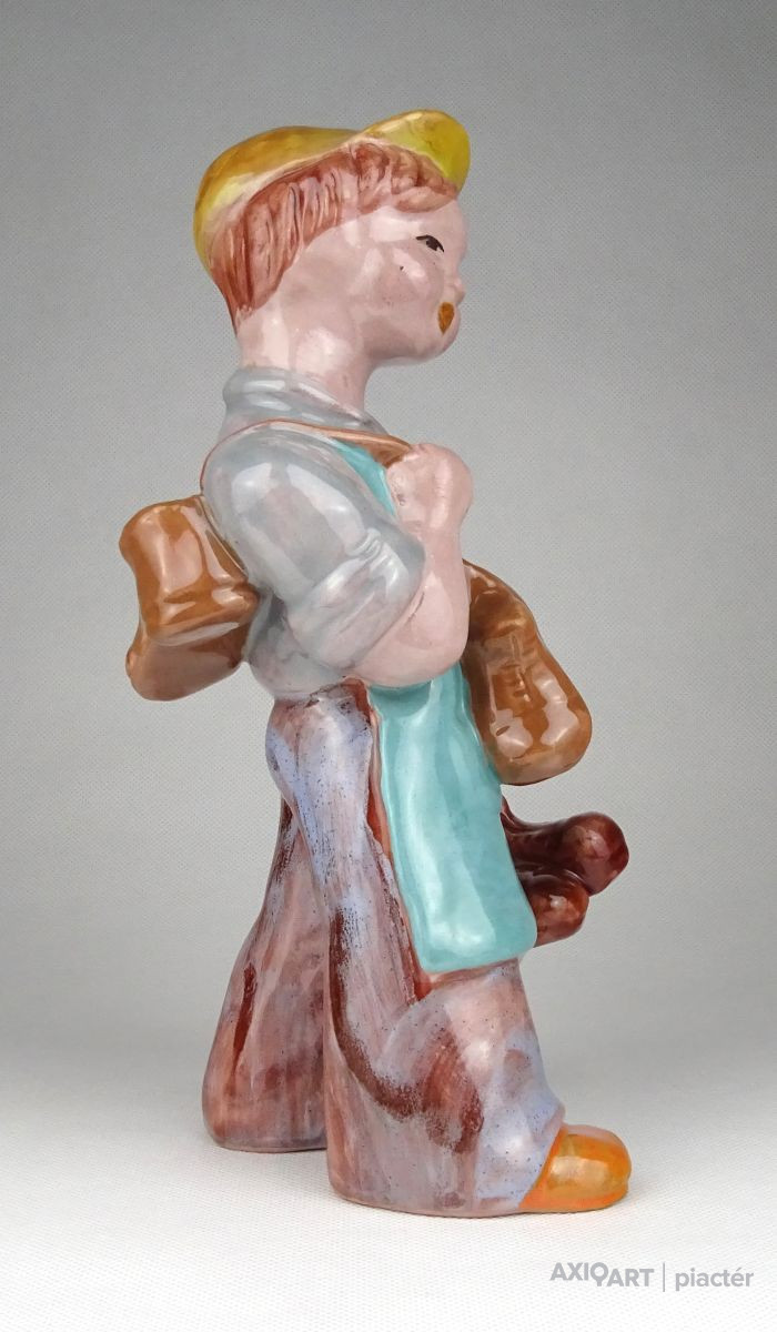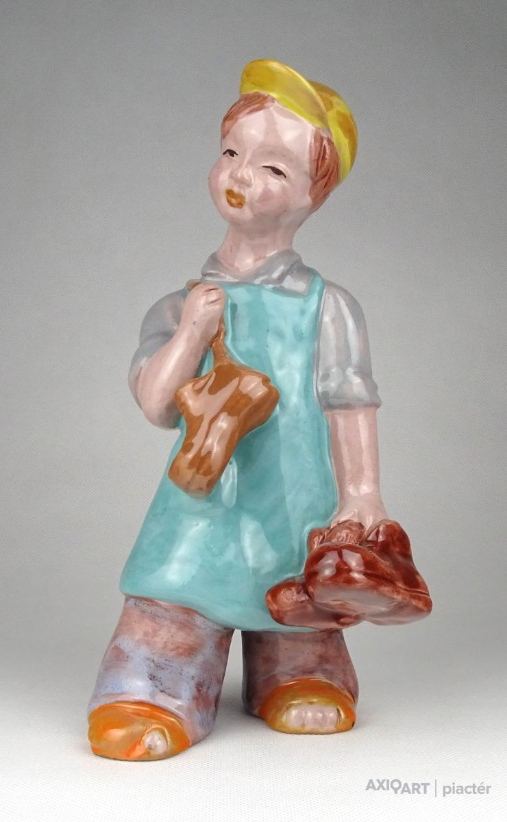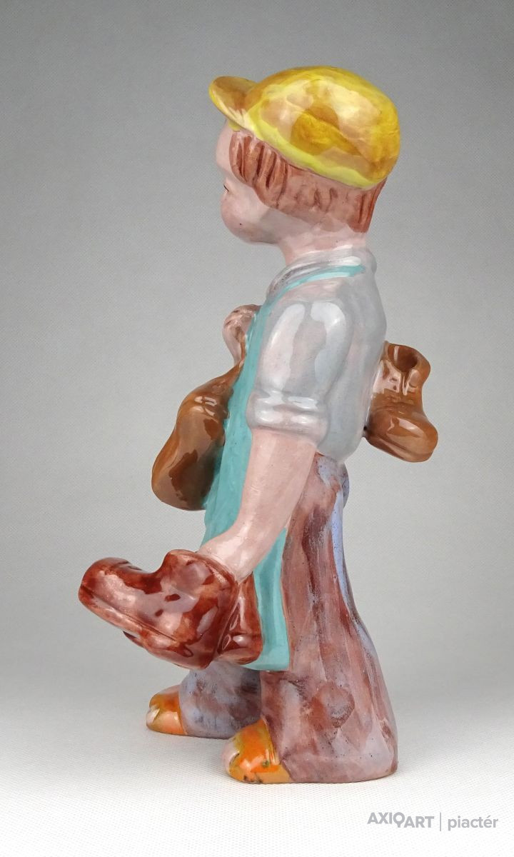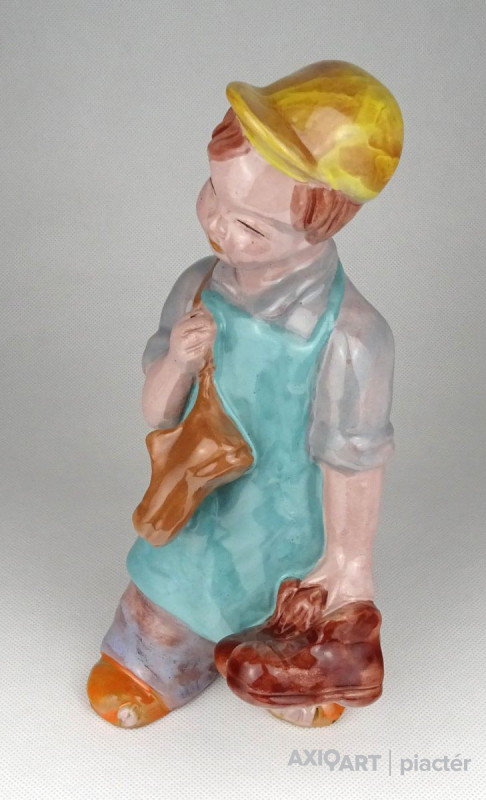 Hibátlan állapotú, kézi festéssel díszített H. Rahmer Mária kerámia suszter fiú, kisfiú, inas legény jelzés nélkül.