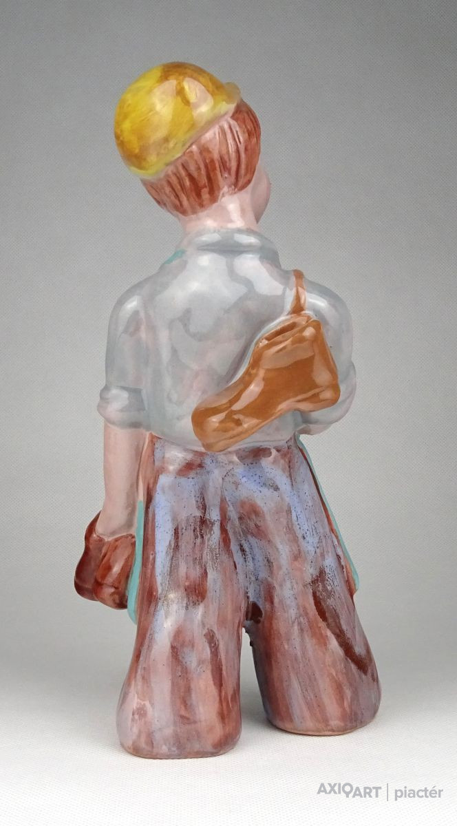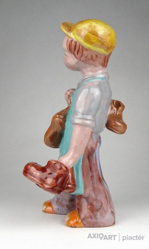 [1H671/X158] Hibátlan állapotú, kézi festéssel díszített H. Rahmer Mária kerámia suszter fiú, kisfiú, inas legény jelzés nélkül. Magasság: 23 cm Szélesség: 12.5 cm Súly: 0.83 kg