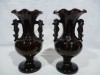 [3406/UZ-N] Gyönyörű 30-as évekbeli folyatott mázas mezőtúri kerámia váza párban. Virág mintás füles, zöld, barna folyatott mázas kerámia, gyűjteménybe való darab. Alján gumibélyegzős jelzés Szabó József ? Mezőtúr felirattal. Az egyik váza pereme profi restaurátor által javított, nehezen észrevehető. Magasság: 28 cm Szélesség: 14 cm Súly: 2.4 kg