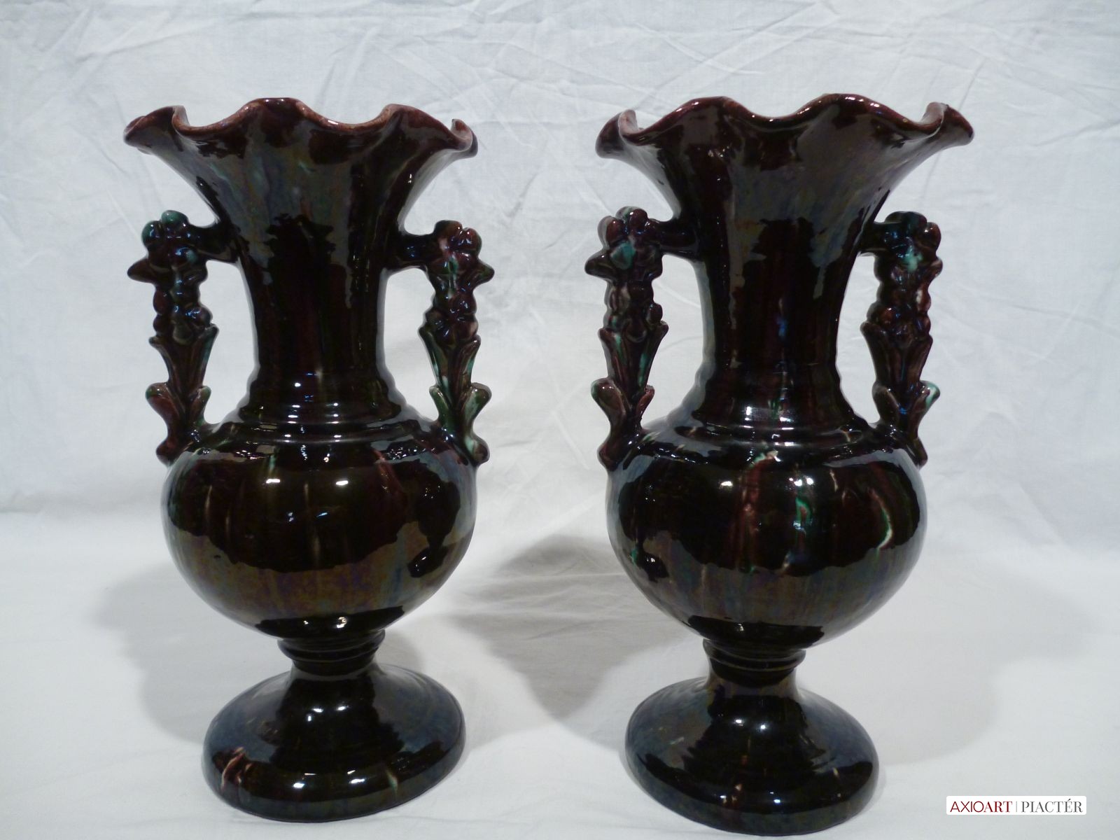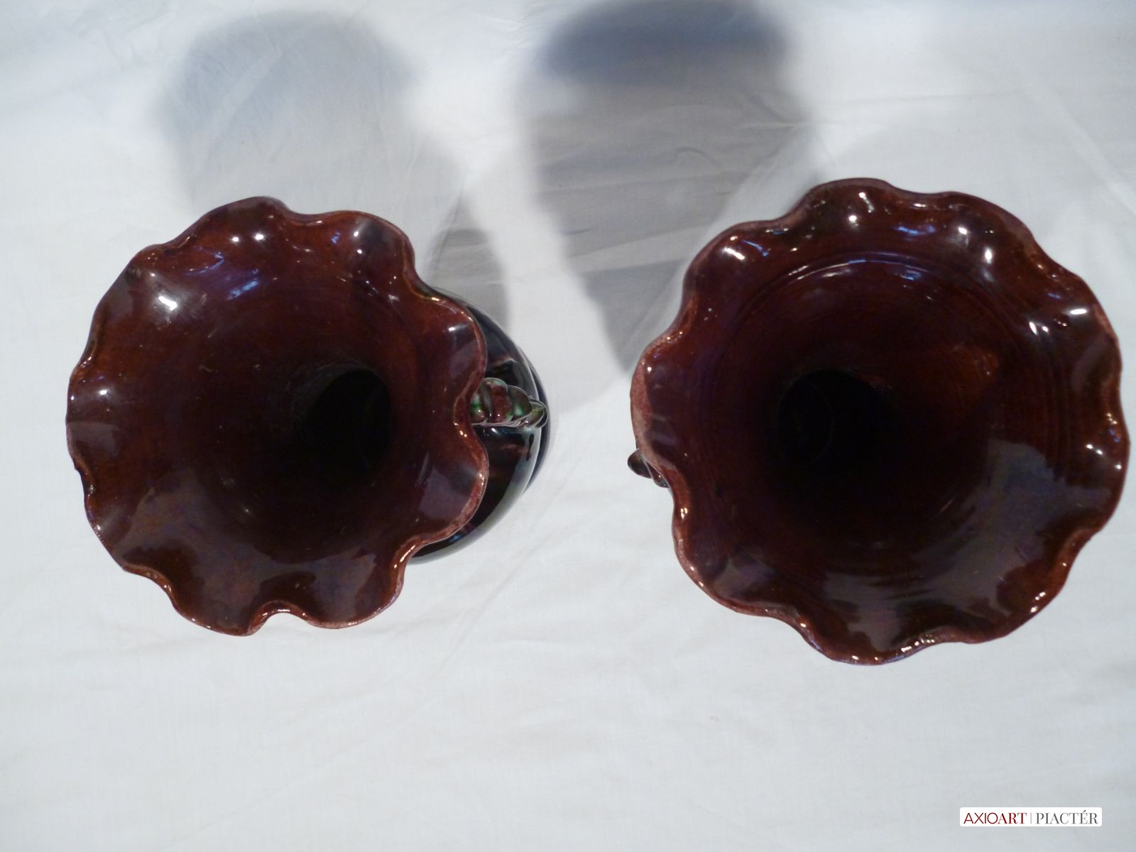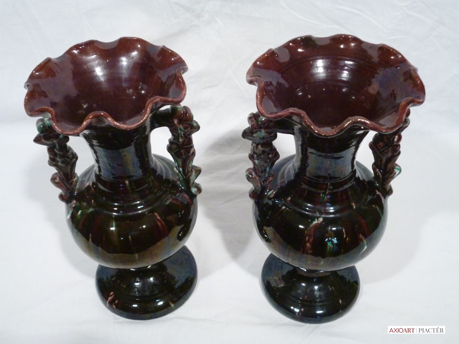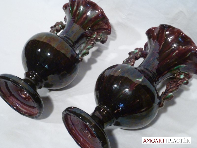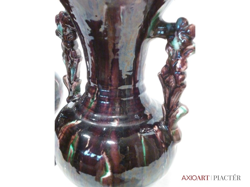Gyönyörű 30-as évekbeli folyatott mázas mezőtúri kerámia váza párban.
