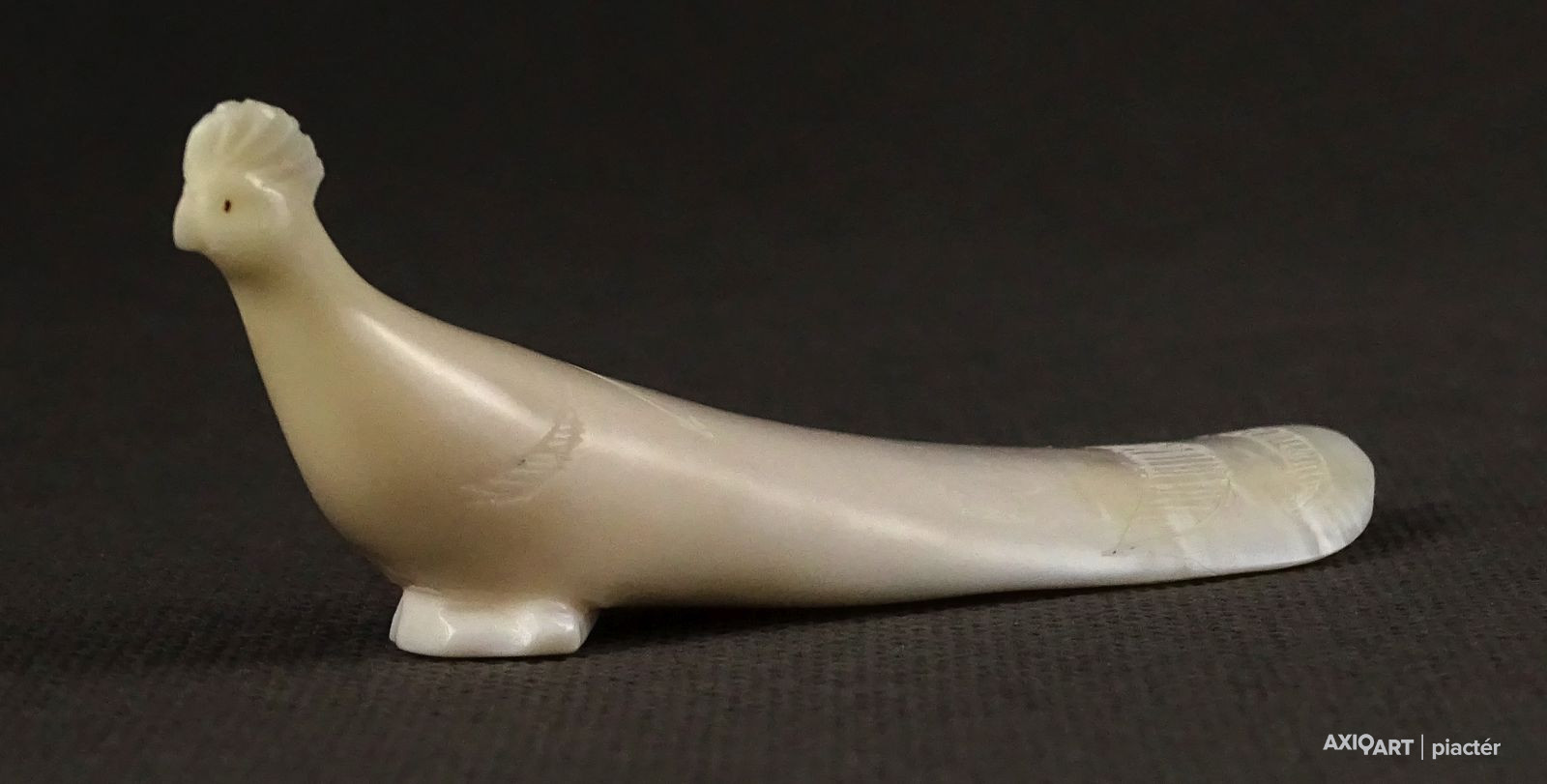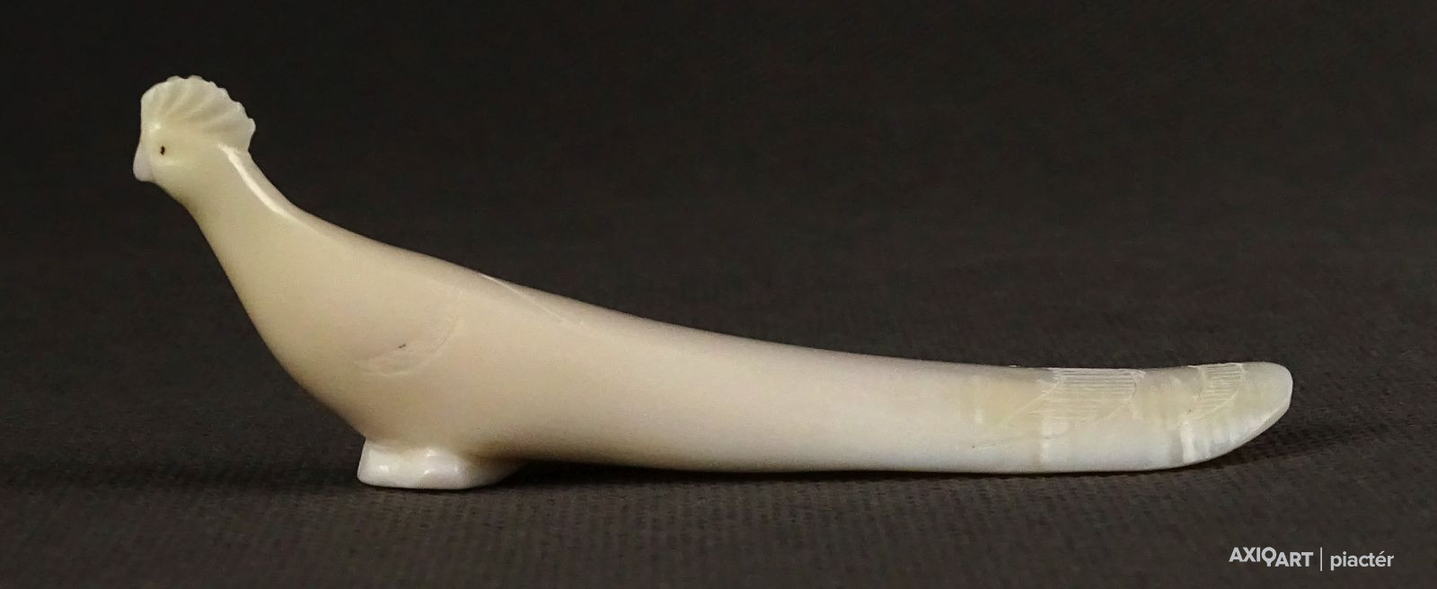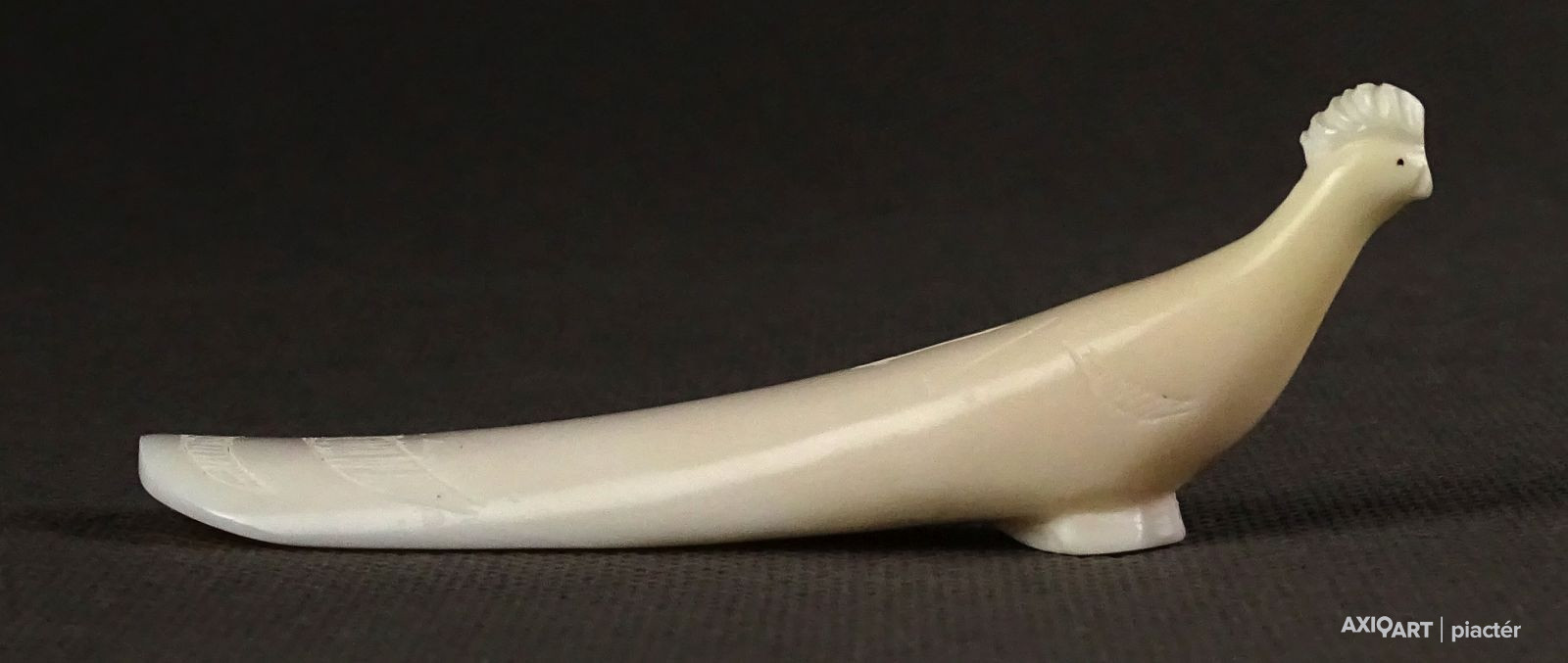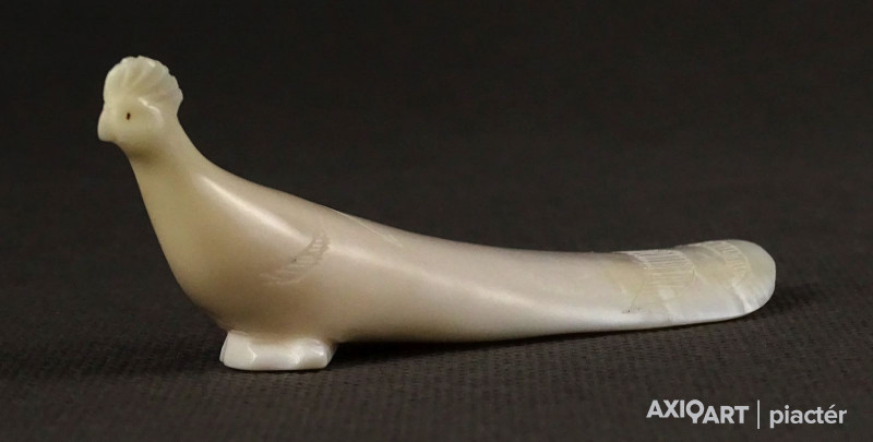 [1R431/Z009] Régi, szép állapotú faragott csont madár, páva szobor. Alján karcolt jelzés: MADE IN USSR 611 Magasság: 3 cm Szélesség: 1.8 cm Hosszúság: 8.5 cm Súly: 0.02 kg