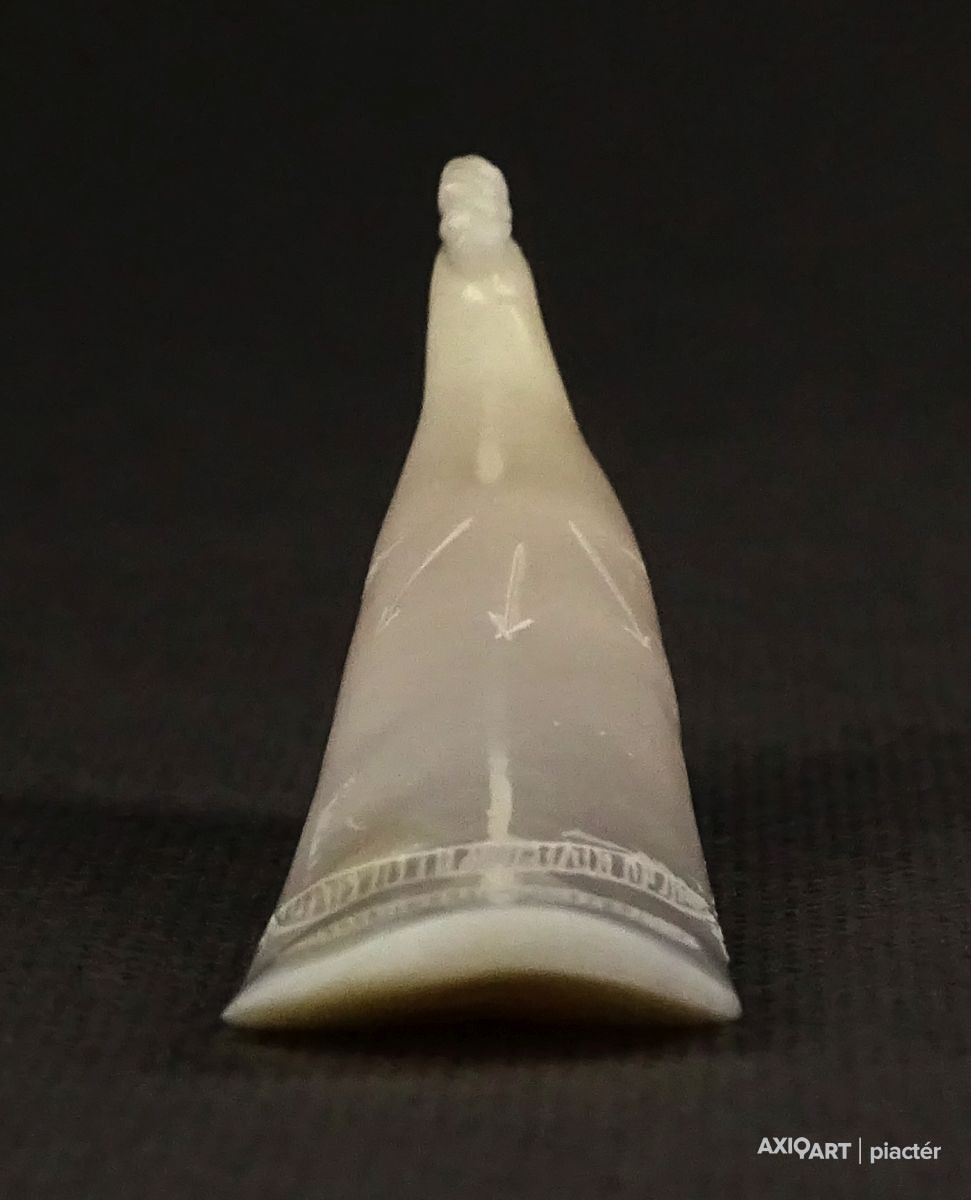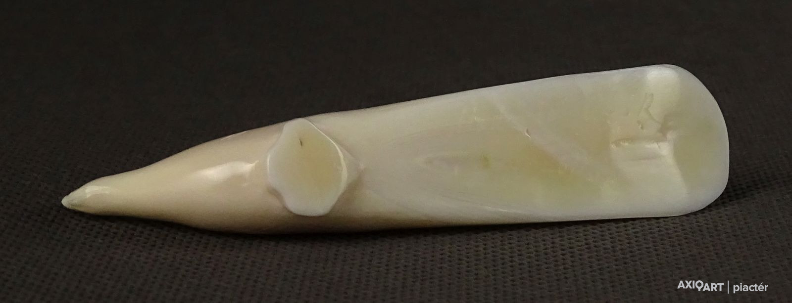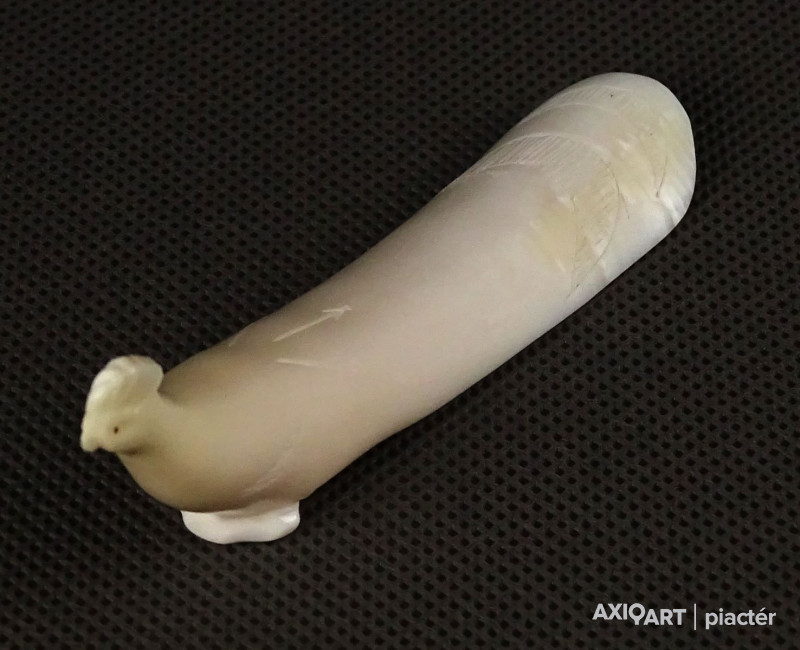 [1R431/Z009] Régi, szép állapotú faragott csont madár, páva szobor. Alján karcolt jelzés: MADE IN USSR 611 Magasság: 3 cm Szélesség: 1.8 cm Hosszúság: 8.5 cm Súly: 0.02 kg
