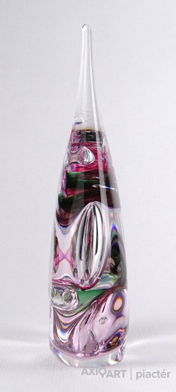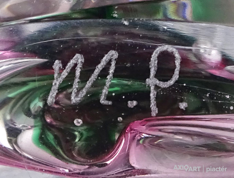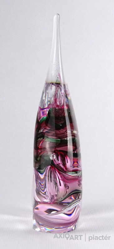 [1M045/VTR-3] Hibátlan állapotú, jelzett fújt üveg dísztárgy. Alján karcolt jelzés: M.P. Magasság: 14 cm Szélesség: 8.5 cm Súly: 0.44 kg