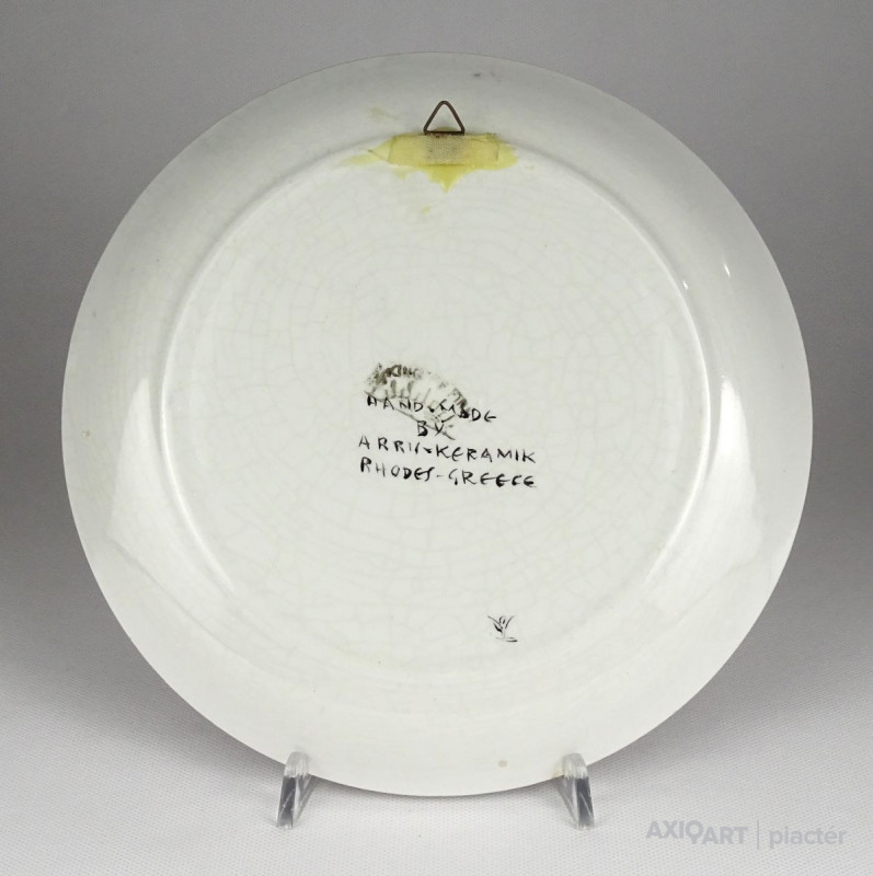 [1S315/X028] 25% ÁRENGEDMÉNY MINDEN TERMÉKÜNKRE Dec. 14-ig Hibátlan állapotú, falra akasztási lehetőséggel rendelkező, jelzett falitányér. Közepében gyönyörű ugró szarvas. Alján jelzés: HAND MADE BY ARRIS KERAMIK RHODES-GREECE Szélesség: 23.5 cm Súly: 0.41 kg