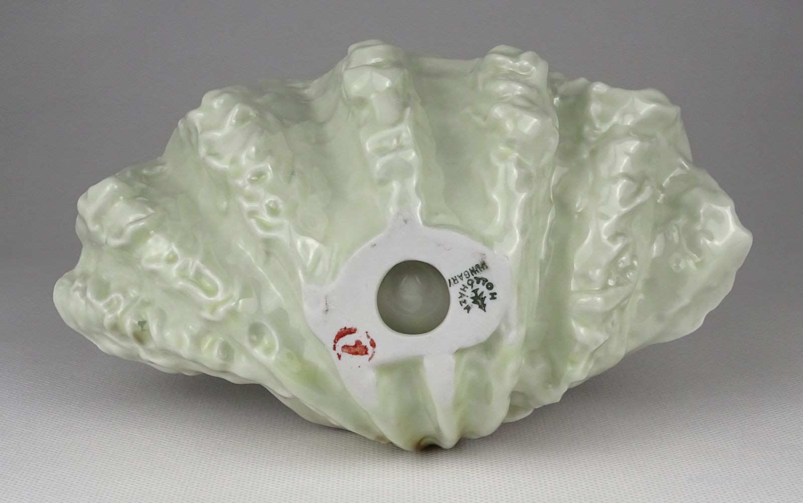 [1N477/X300] Szép állapotú, jelzett porcelán kagyló. Gyűrűtartó, ékszertartó, szappantartó. Alján jelzés: HOLLÓHÁZA HUNGARY Magasság: 6.7 cm Szélesség: 11 cm Hosszúság: 19.8 cm Súly: 0.335 kg