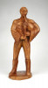 Hibátlan állapotú, máz nélküli, talapzaton álló népviseletes kerámia férfi. Kezében kosfejes duda.
