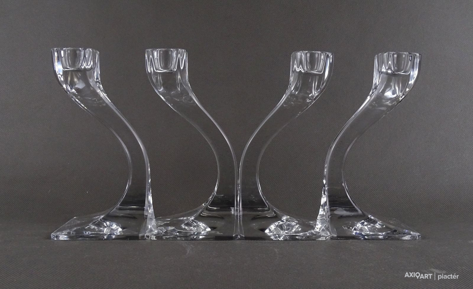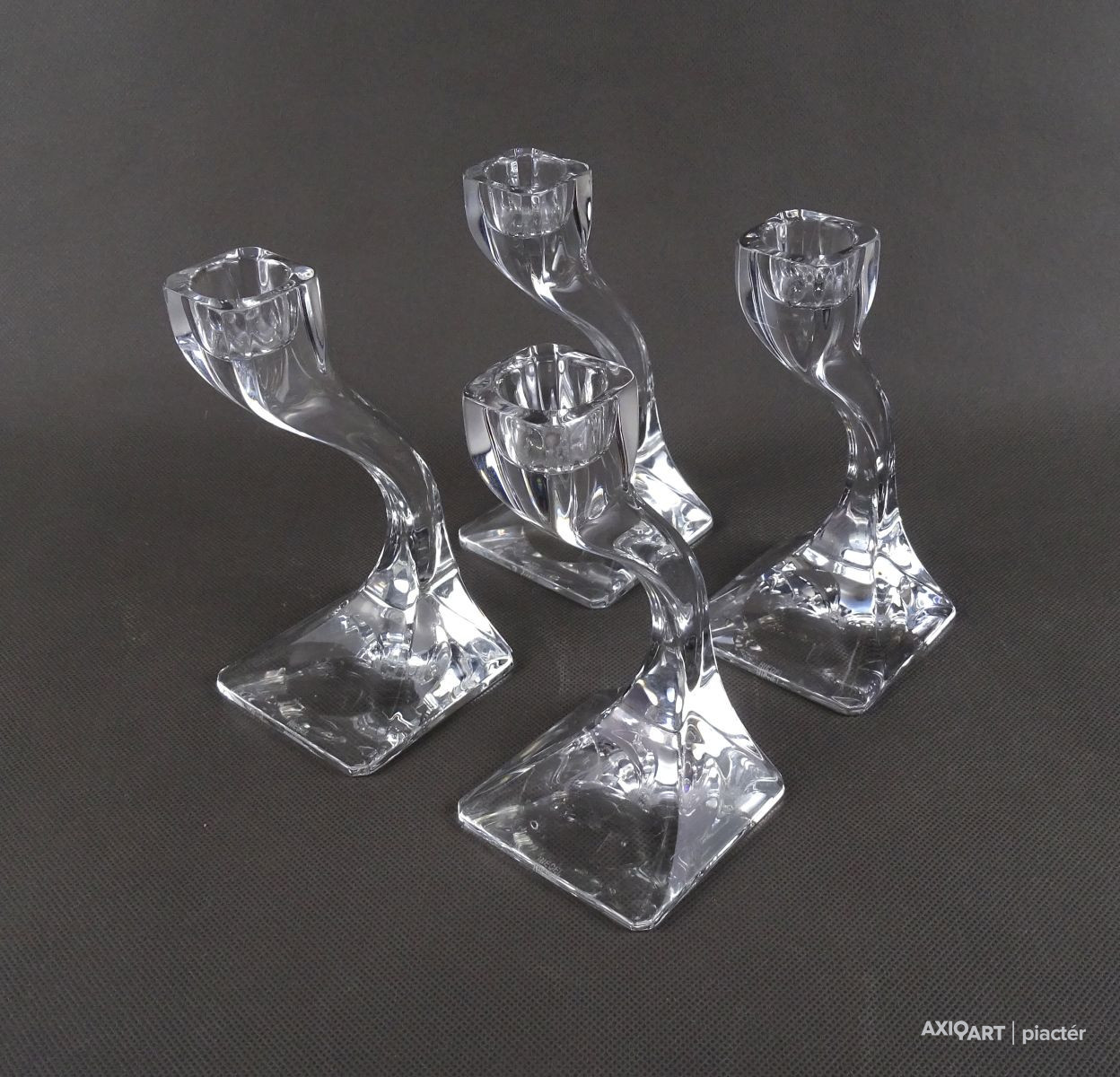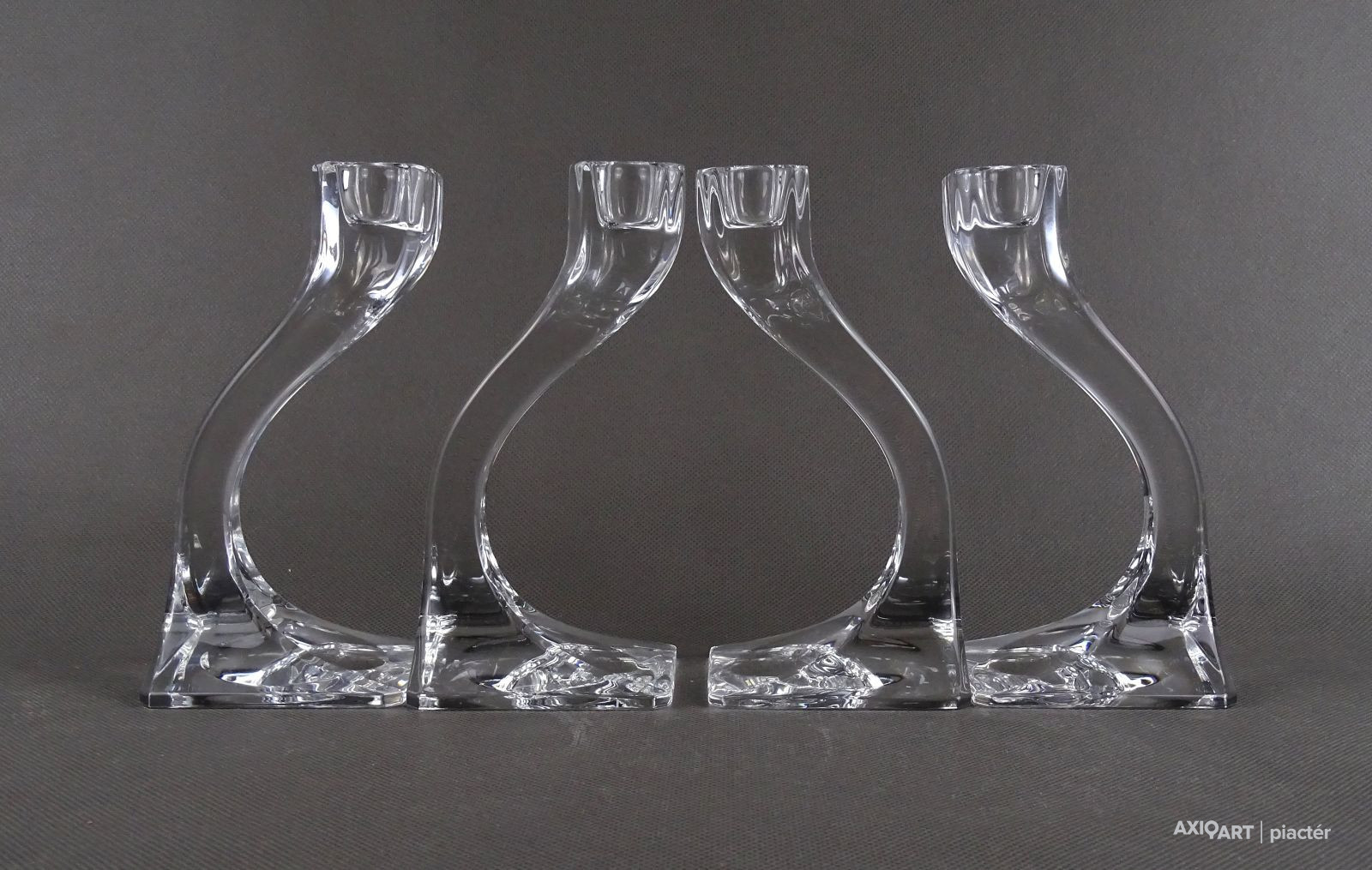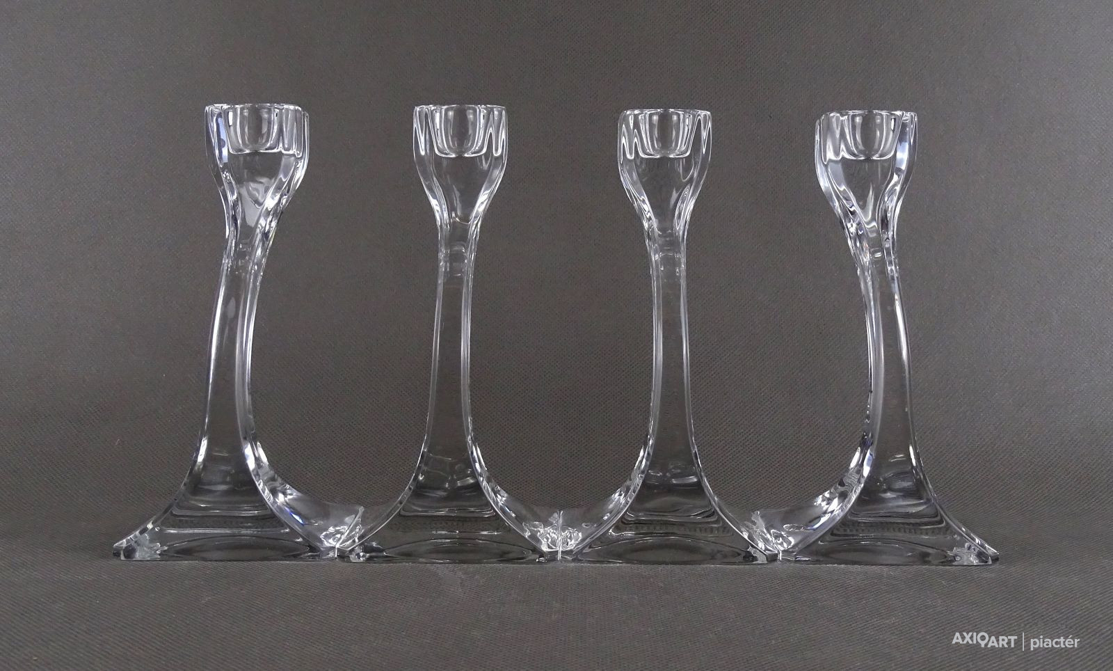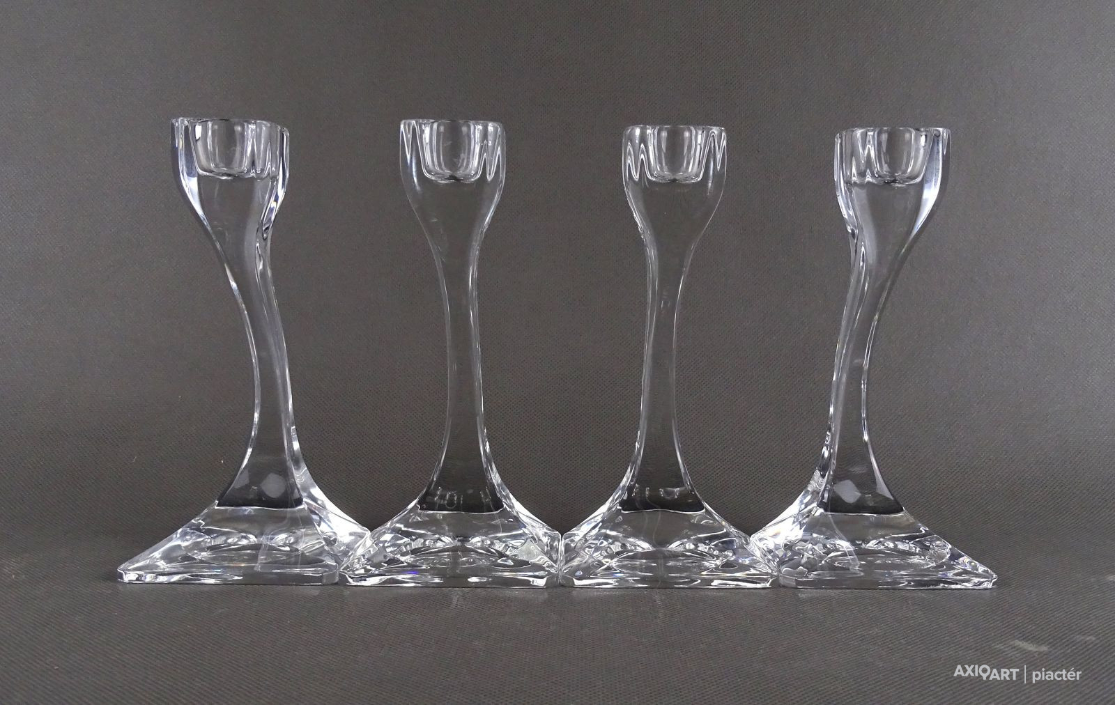 Hibátlan állapotú, négy darabból álló, art deco stílusú, formatervezett, jelzett osztrák üveg gyertyatartó szett.