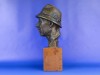 Régi jelzett, datált kalapos férfi réz mellszobor márvány talapzaton.