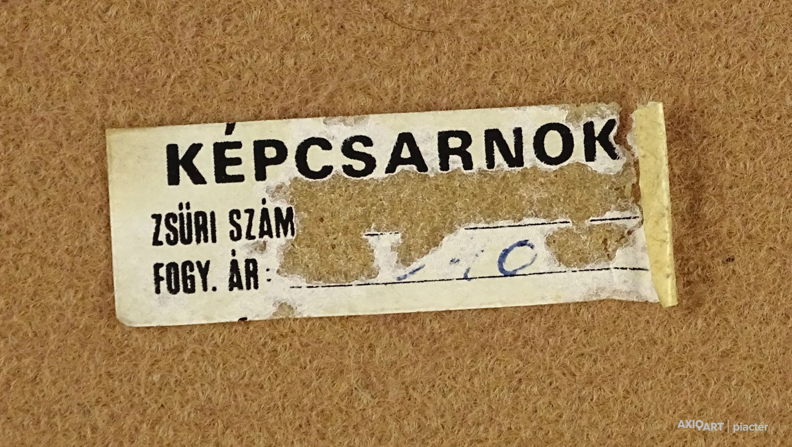 [1Y034/Z018] Olaj vászon festmény, üveglap mögött, szép állapotú képcsarnokos keretben. Akasztási lehetőséggel rendelkezik. Jelezve jobbra lent: Balog A. Hátoldalán a kereten Képcsarnok Vállalat címke töredék látható, rajta felirat: A művészeti alkotás címe: LEÁNY Magasság: 86 cm Szélesség: 66 cm Súly: 5.37 kg Balogh András (képei szignóján az 1960-as évektől Balog) (Budapest, 1919. március 14. — Budapest, 1992. március 18.) festőművész, kerttervező, művészeti szakíró, c. egyetemi tanár. Életpályája és munkássága Apai ágon a géresi Baloghok Szatmár megyéből a dél-erdélyi Alsó-Fehér megyébe származtak, anyai fölmenői a Székelyföldön: Csíkban, ill. Háromszéken éltek. Szülei az 1900-as évek elején költöztek Budapestre. A Képzőművészeti Főiskolán 1937-ben kezdte meg tanulmányait Burghardt Rezső tanítványaként. 1950-töl 1980-ig a Kertészeti Főiskolán (később Kertészeti Egyetem) tanított a kerttervezési tanszéken művészettörténetet, szabadkézi rajzot, ábrázoló geometriát és kertesztétikát. Az Iparművészeti Főiskolán óraadóként kertesztétikát adott elő. 1971-ben részt vett a firenzei Palazzo Strozziban rendezett biennálén, ahol aranyéremmel tüntették ki. Rendszeres önálló és csoportos kiállítások sora következett ezután nemcsak Magyarországon, hanem Olaszország és Németország számtalan városában, kiállított Finnországban, Kanadában is. Egyéni kiállításai gyakran katalógusokkal jelentek meg.[1][2][3] Nyaranként Tihanyban vagy Zsennyén alkotott. Festészetét poétikus realizmus jellemzi, dekoratív elrendezésű kompozíciói és lágy színvilága bensőséges hangulatot, szépséget, harmóniát árasztanak. (Lány egyszarvúval; Alvó, Emberpár és táj, stb.) Nagyon sok tájképet és portrét festett, történelmi személyiségekről is, 1978 és 1989 közt megfestette Mindszenty József bíboros portréját. Képei a Magyar Nemzeti Galériában, vidéki múzeumainkban, olasz, német, finn, észak-amerikai, kanadai, ausztráliai gyűjteményekben vannak.