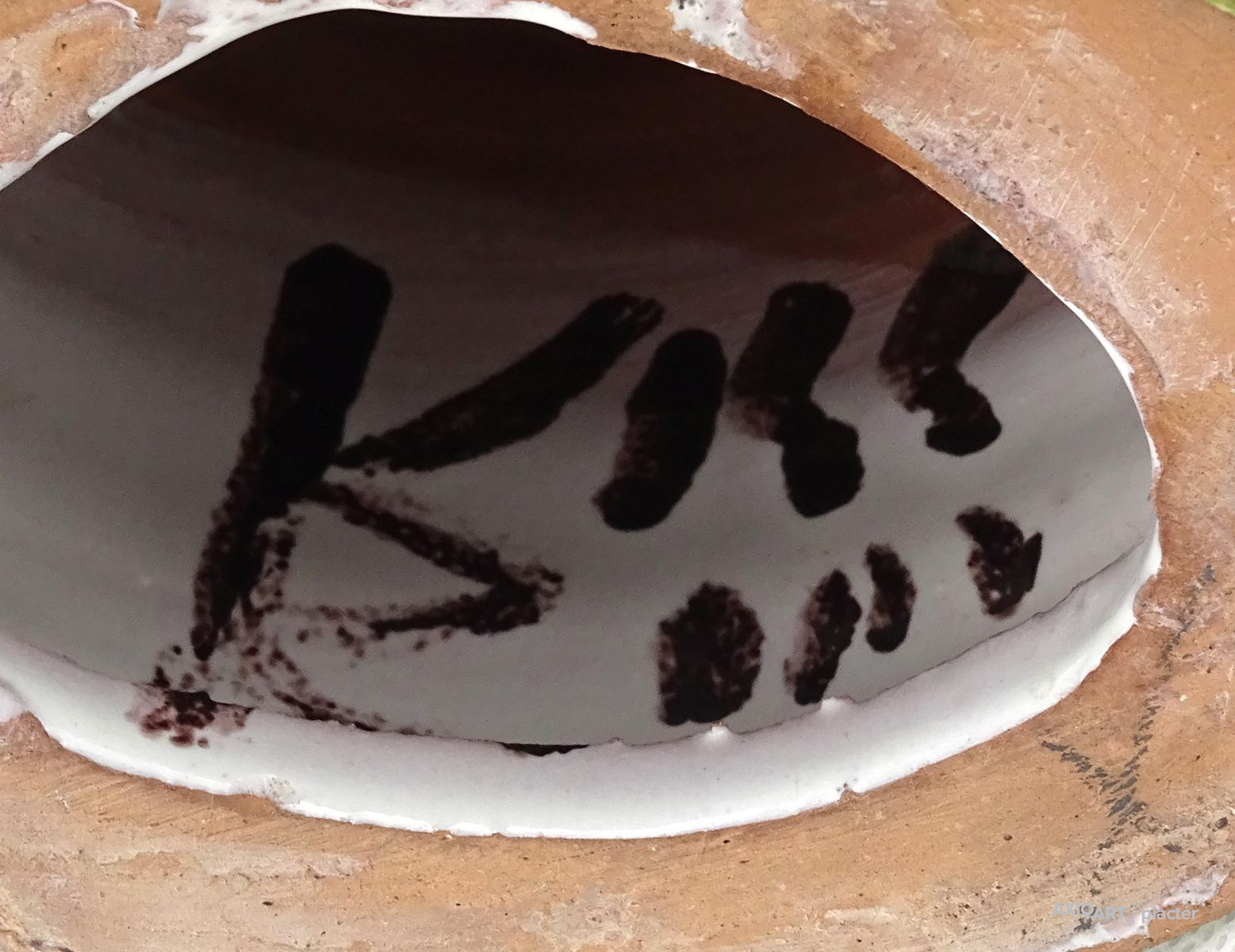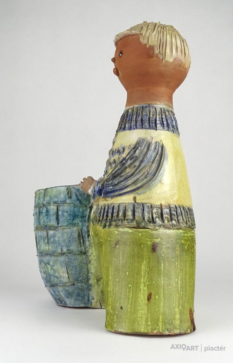 Nagy méretű, jelzett, kézifestett, mázas kerámia szobor. A fiú lábánál máz lepattanások találhatók.
