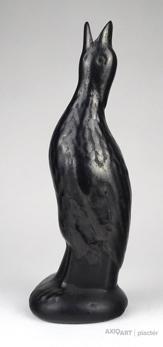 Hibátlan állapotú, jelzett, művészi kerámia figura. Felfelé tekintő talapzaton álló fekete kerámia madár.