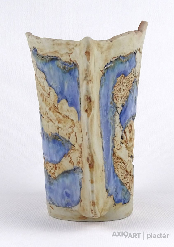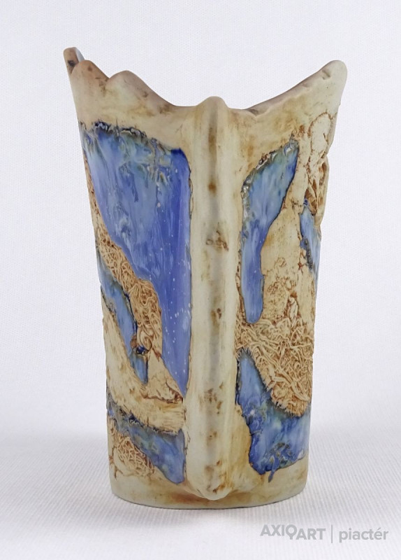 Jelzett malajziai Tenmoku porcelán kézimunka váza 16 cm