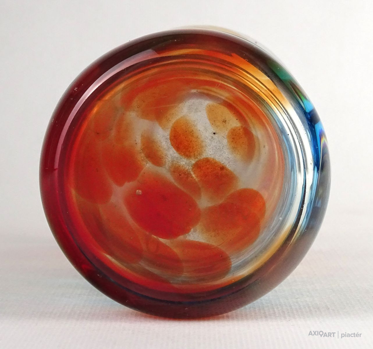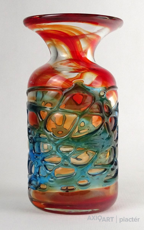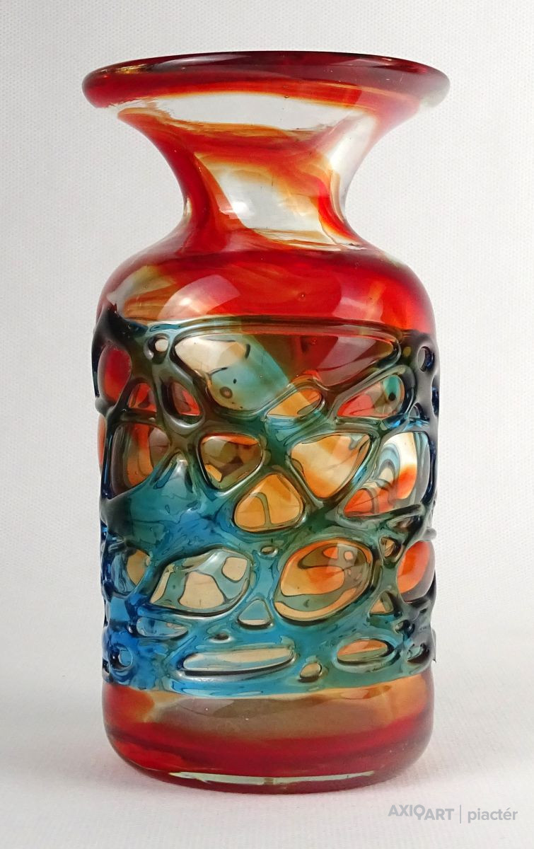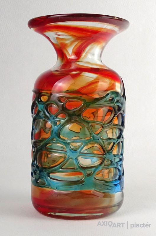 Hibátlan állapotú, színezett művészi üveg váza, díszváza a XX. század második feléből.