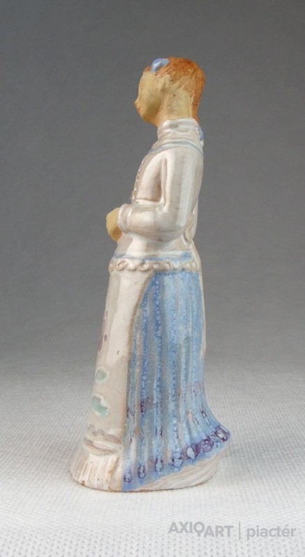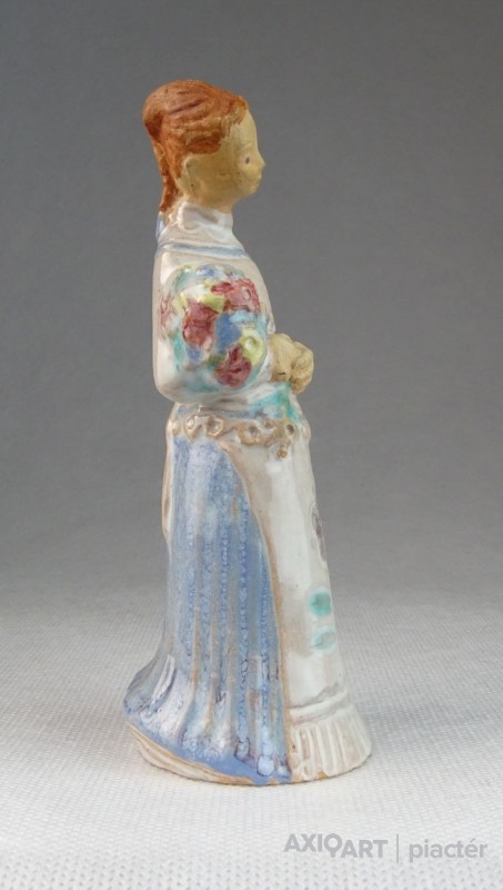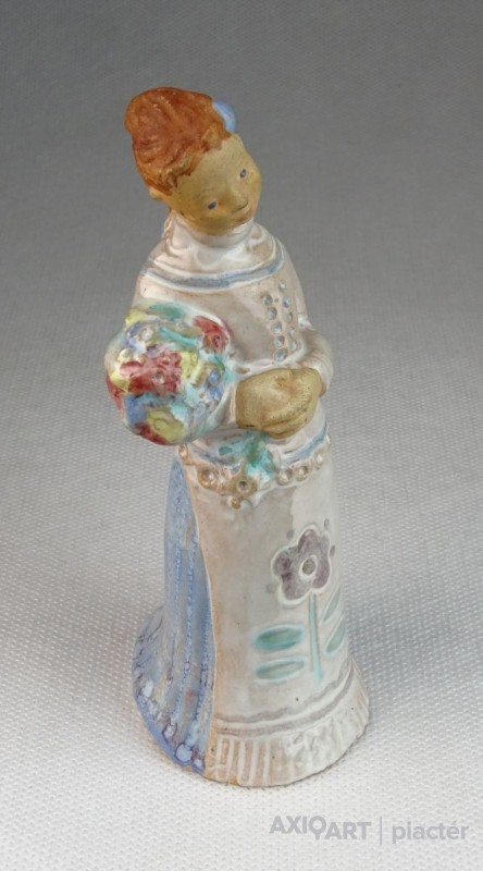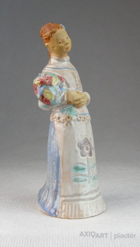 [0N268/X199] Hibátlan állapotú, jelzett virágcsokros menyecske kerámia figura. Karcolt jelzés: MÉSZÁROS G BUDAPEST Magasság: 13 cm Súly: 0.1 kg Mészáros Géza (1918) keramikus Születési hely: Sóskút Születési dátum: 1918 Honlap:  Kiállítások az adatbázisban: Mesterei: Ohmann Béla. 1934-37 között az Iparrajziskola szobrász szakán kezdte tanulmányait, tanára Ohmann Béla. 1943-ban fejezte be a Magyar Királyi Iparművészeti Iskola szobrász szakát, mestere: Orbán Antal. Kézzel mintázott, kétszer-háromszor égetett samottos, agyag mázas kerámia plasztikákat készített. Szobrászi megközelítés jellemzi nagyméretű tárgyait, stilizált figurális domborműveit. A Herendi Porcelángyárnak is tervezője volt. Egyéni kiállítások 1968 • Gyűjteményes kiállítás, Körmend Válogatott csoportos kiállítások 1958 • Brüsszeli Világkiállítás 1959 • 4. Országos Iparművészeti kiállítás, Műcsarnok, Budapest 1960 • Magyar Iparművészet, Belgrád 1961 • Magyar iparművészeti kiállítás, Prága 1962 • Magyar iparművészet, Stockholm • Kerámia kiállítás, Helsinki 1963 • Modern magyar kerámia, Royal Festival Hall, London 1965 • 5. Országos Iparművészeti kiállítás, Műcsarnok, Budapest 1968 • Mai magyar iparművészet, Bukarest 1969 • Magyar kerámia kiállítás, Oslo. Művek közgyűjteményekben Köztéri művei Mesék (falikép, 1958, Szeged, óvoda) oszlopburkolat (festett figurális csempe, 1962, Debrecen, Nagyáruház) Éneklők (dombormű, 1964, Szeged, Felső-Tiszaparti Gimnázium) falikép (kerámia, 1969, Hódmezővásárhely, Felsőfokú Mezőgazdasági Technikum) Irodalom DUTKA M.: A modern iparművészet a Műcsarnokban, Magyar Nemzet, 1959. december 24. MIHAILOV, O.: ~ keramikusmester, Pravda, 1961. január 6. MENYHÁRT J.: A Hajdúsági Áruház művészi díszei, Hajdú-Bihar Megyei Napló, 1962. augusztus 19. Szolláth György Forrás: artportal.hu