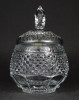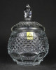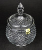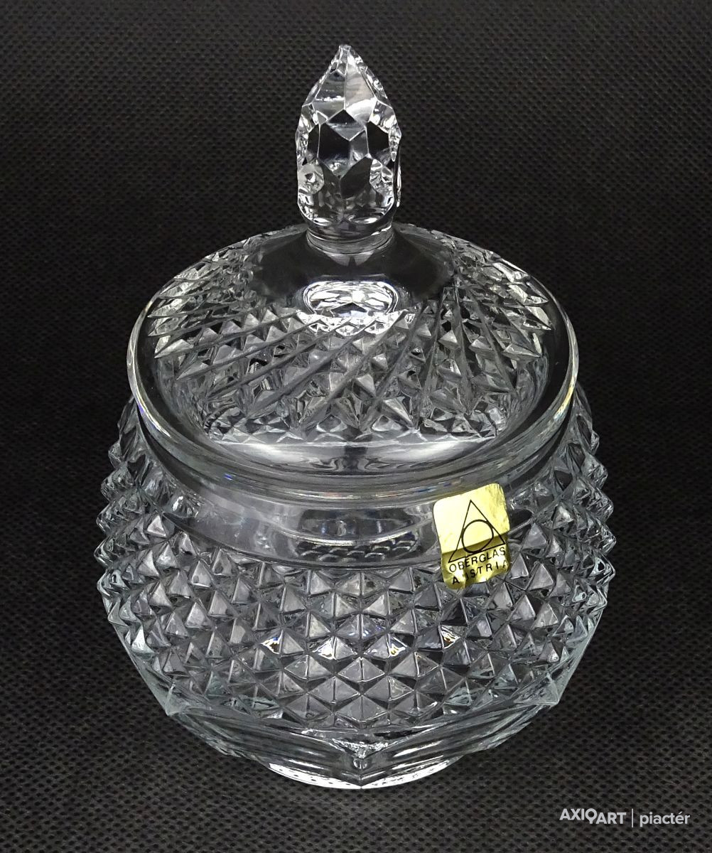 [1O251/X119] Hibátlan állapotban lévő jelzett osztrák üveg cukortartó, cukorkínáló csiszolt üveg tetővel. Jelzés papír vignettán: OBERGLAS AUSTRIA Magasság: 13 cm Szélesség: 9.5 cm Súly: 0.42 kg