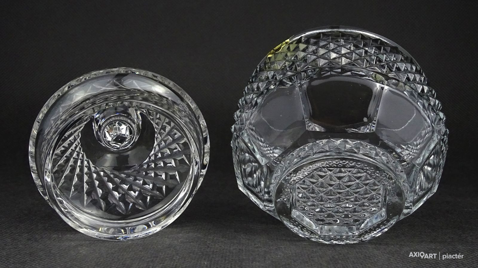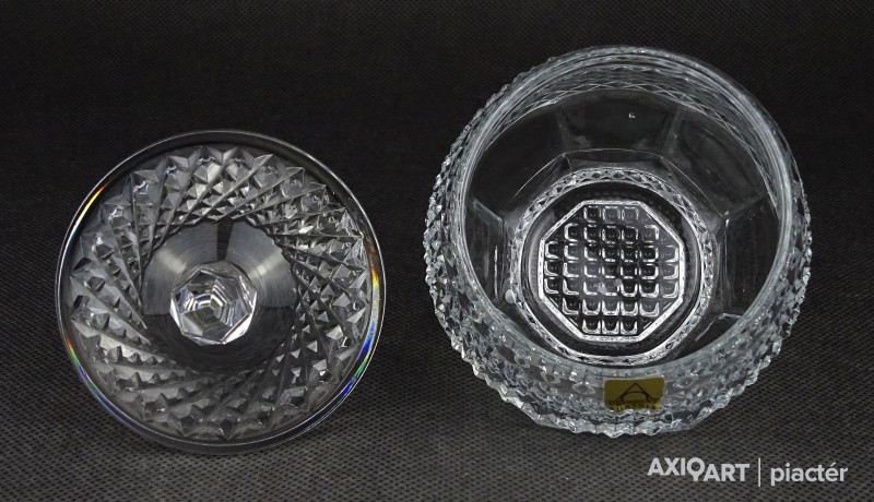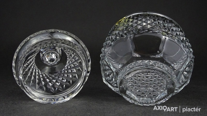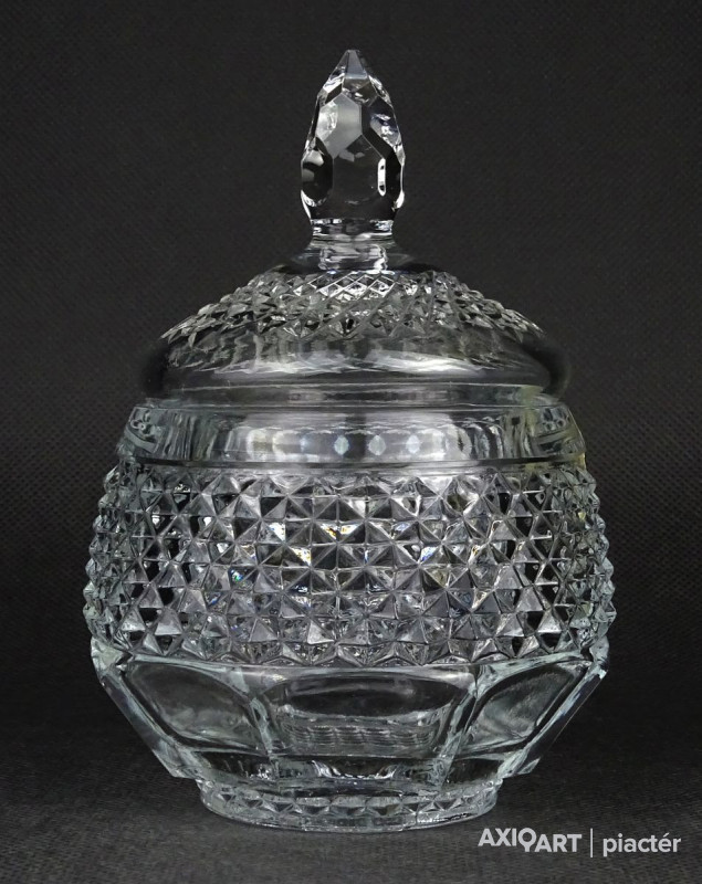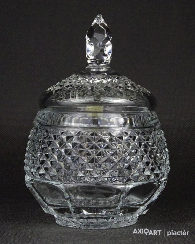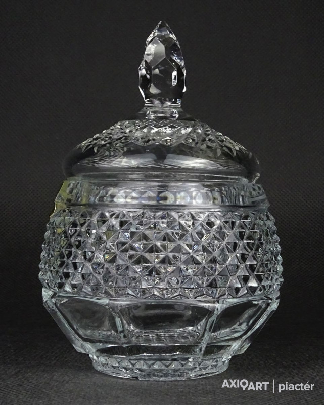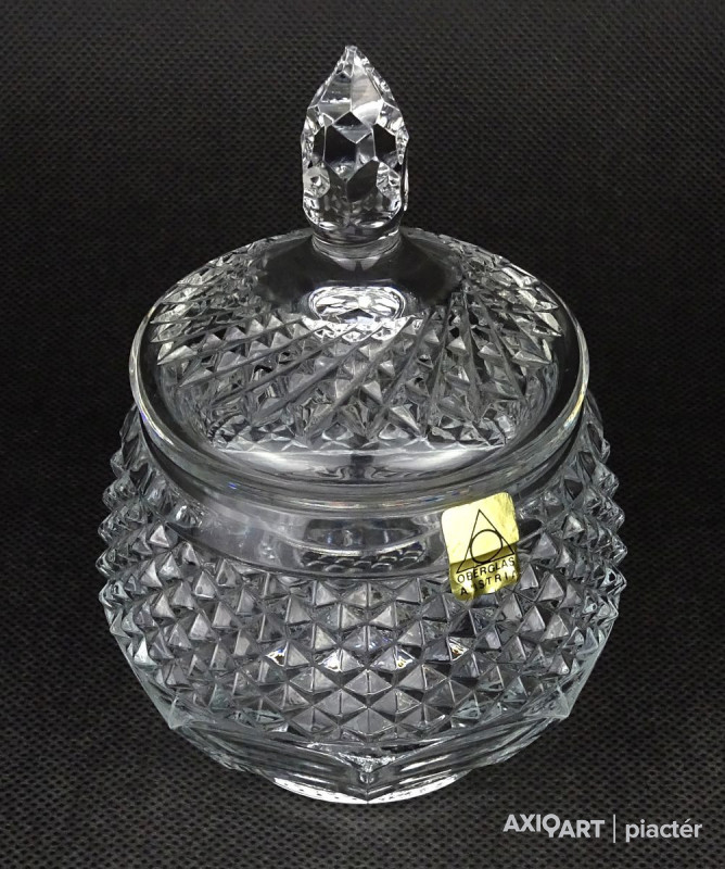 Hibátlan állapotban lévő jelzett osztrák üveg cukortartó, cukorkínáló csiszolt üveg tetővel.
