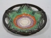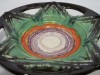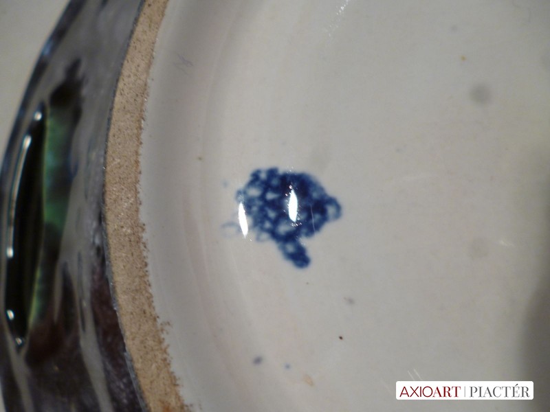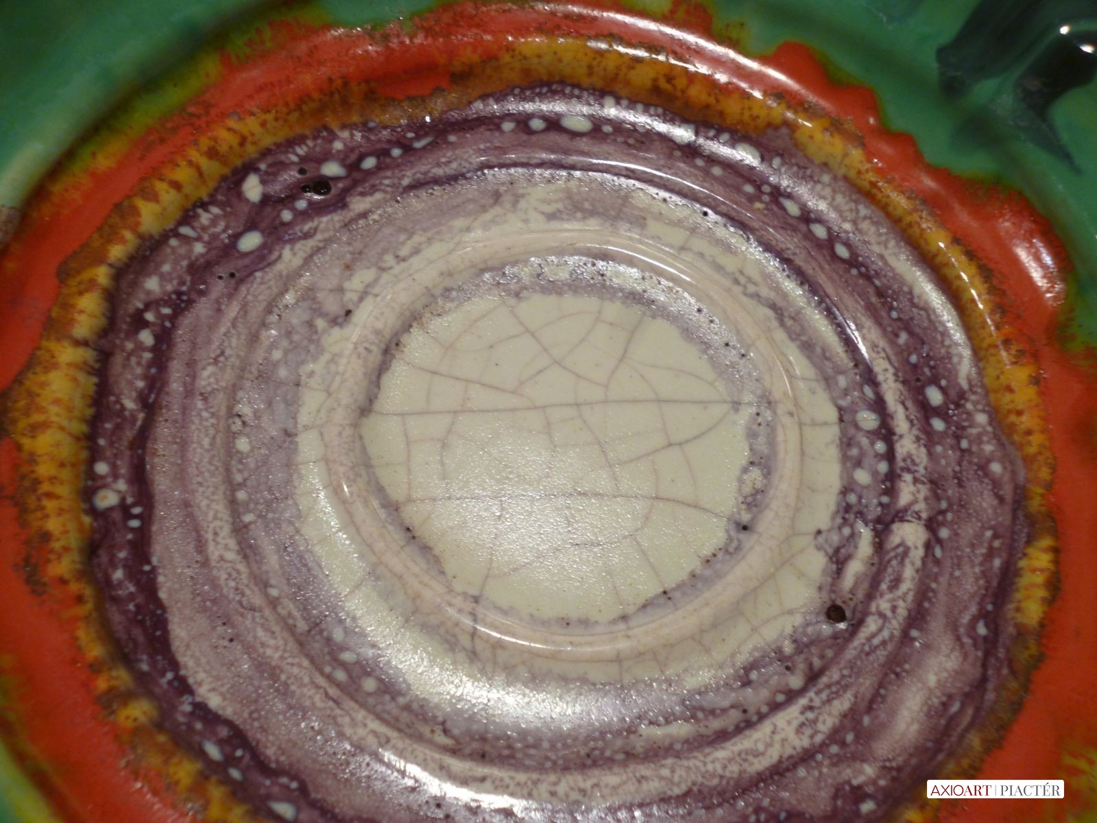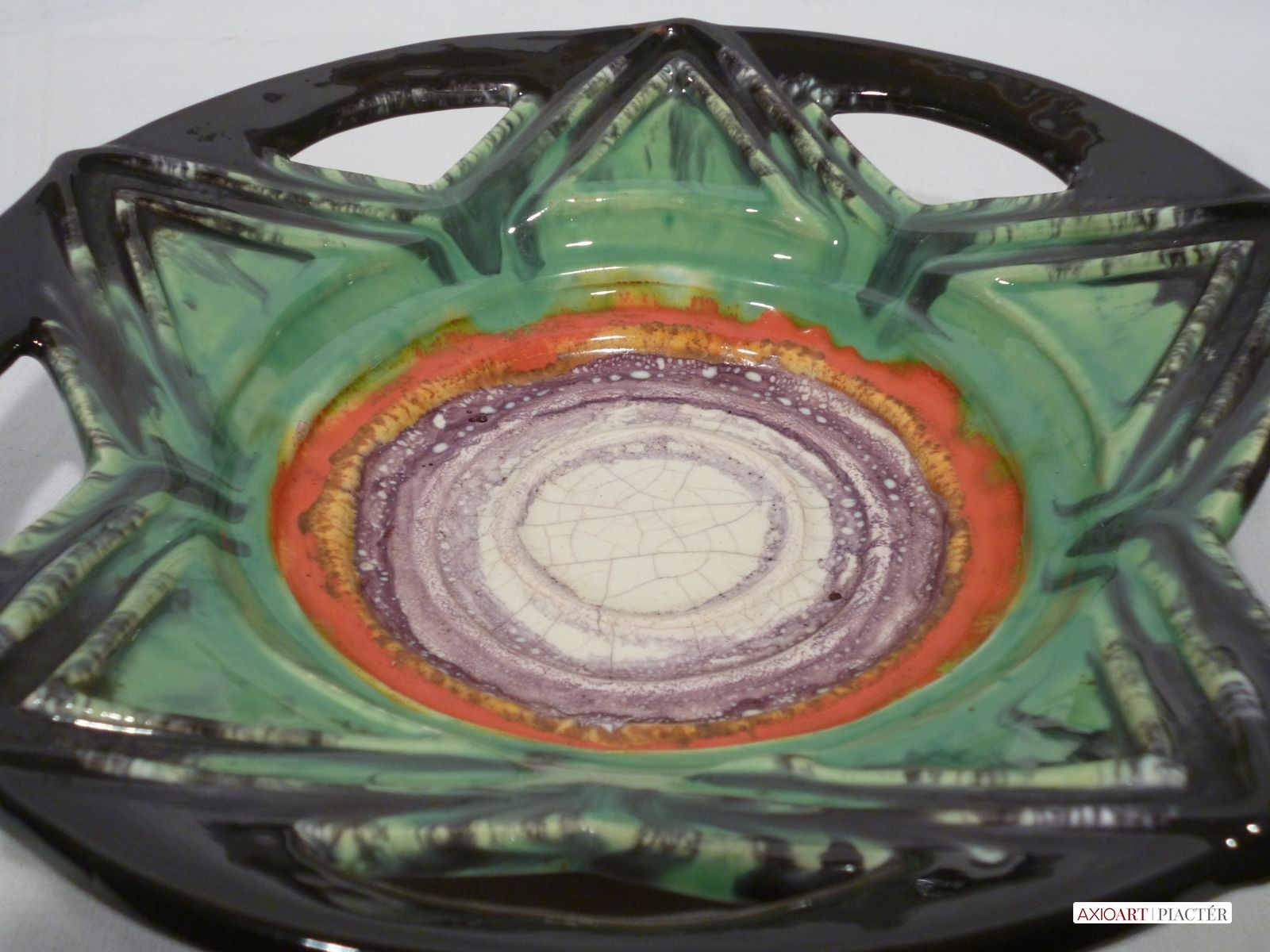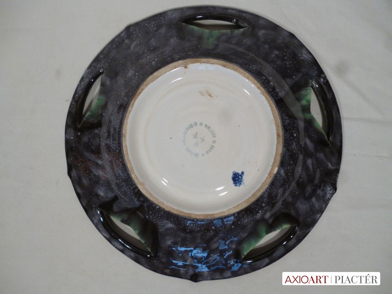 Nagy méretű, szép állapotú, áttört szélű jelzett mázas kerámia asztalközép kínáló tál.