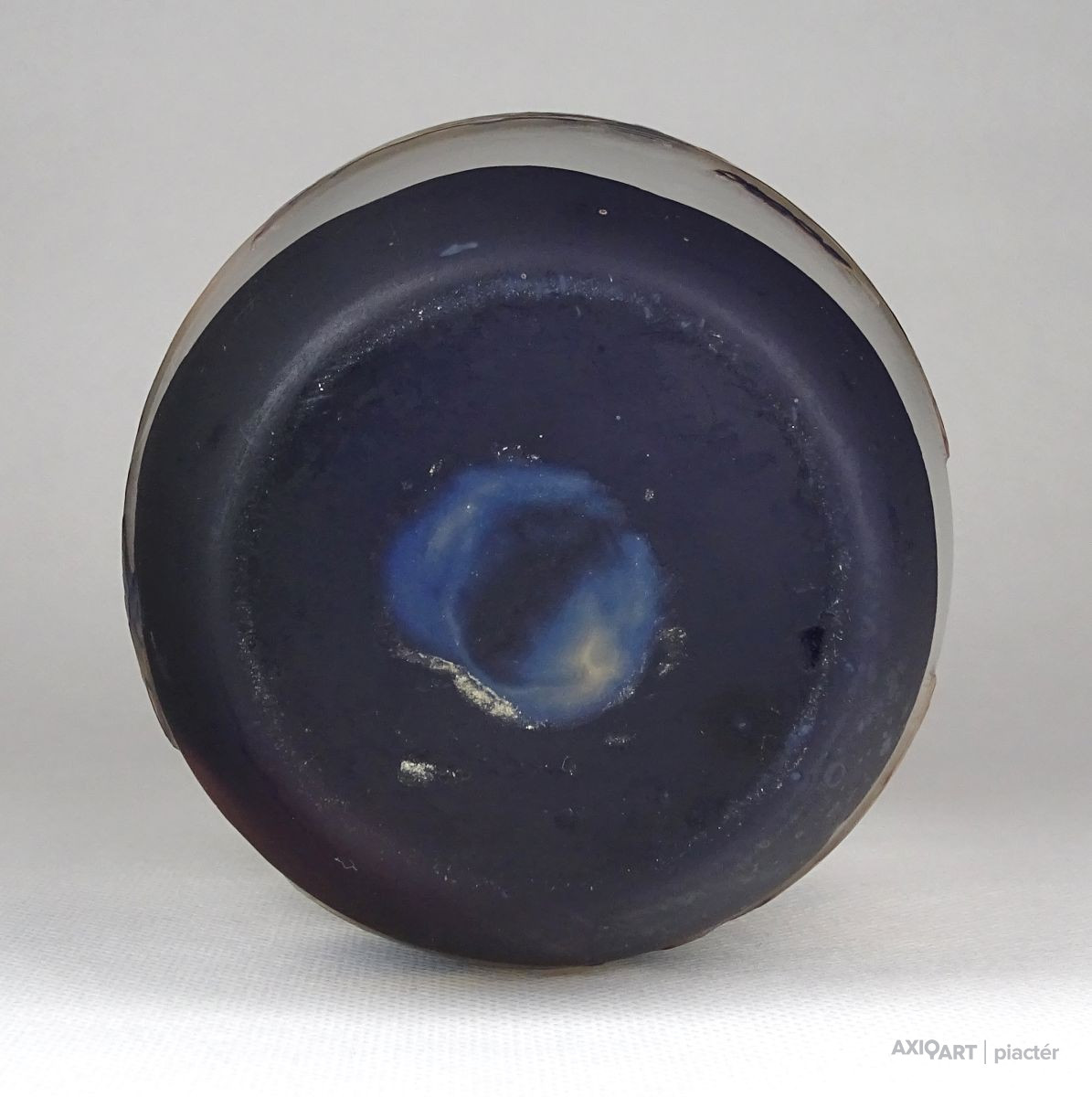 [1O212/Z046] Hibátlan állapotú, színezett fúvott üveg váza, talpas üveg váza vagy üveg kupa. Skandináv design üveg. Talpán a fúvás szakítás nyoma szépen kivehető. Magasság: 14 cm Szélesség: 6.5 cm Súly: 0.215 kg Erik Höglund  Ugrás a navigációhozUgrás a kereséshez A papról (1902–1971) lásd Erik Höglund (pap) . Erik Höglund Született 1932. január 31. Karlskrona , Blekinge megye Halál 1998. január 27. (65 éves) Maria Magdalena plébánia , Stockholm Állampolgárság svéd Foglalkozás/megbízás Tervező, művész Ismert Tervezés Koszta Boda számára Feleség Maerit Levin (sz. 1953–1967; elvált) Ingrid Höglund (sz. 1974–1998; halála) Partner Monica Backström (partner 1968-1972) Rokonok Anna Höglund (lánya) Erika Höglund (lánya) Albin Höglund (fia)  Erik Sylvester Höglund , 1932. január 31-én született Karlskronában , 1998. január 27-én halt meg a stockholmi Maria Magdalena plébánián , svéd szobrász , festő , grafikus és üvegművész . Életrajz  Erik Höglund Torsten Höglund és Jenny Jonsson könyvelő fia, valamint Tore Enar Höglund szobrász és grafikus öccse volt . Tanulmányait a stockholmi Konstfackban végezte , először dekorfestészetet Fritz Sjöströmnek , majd szobrászatot Robert Nilssonnak , végül 1951–1952-ben Harald Sallbergnek grafikát . Erik Rosén , a Boda Üveggyár 1953 és 1973 között dolgozó tervezője fogadta be , és ez idő alatt jött el, hogy átalakítsa a svéd műüveggyártást az üvegtermékek kinézetére vonatkozó új ötletek bevezetésével. Ösztöndíja többek között metszetekkel kapcsolatban, a színek és a földes, aszimmetrikus dizájn sikeres lett a külpiacon. Bodán töltött ideje alatt fenyővel, vasalással és bútorokkal is foglalkozott. Később más üveggyárakkal is együttműködött, például a Pukeberggel , a Lindshammarral és a Studioglas Strömbergshyttannal . 1968-ban Monica Backström üvegművésszel megalapította a Backström & Höglund Design AB formatervező céget, amely bútorok, háztartási eszközök és használati tárgyak tervezésével foglalkozik. Höglund tagja volt a Vet Hut AB-nek is, amelyet 1971-ben alapított a Boda glasbruk tíz tervezője szokásos munkájuk mellett: Erik Höglund, Monica Backström, Ann Wolff , Göran Wärff , Bertil Vallien , Ulrica Hydman-Vallien , Per Arne. Lundahl, Liselotte Jörgensdotter, Gunhild Sinnemark és Rolf Sinnemark . Erik Höglund szobrászként számos köztéri dekorációt készített különféle anyagokból, köztük téglából és betonból. Ezt követően gyakran dolgozott együtt olyan építészekkel, mint Jon Höjer a Höjer & Ljungqvistnél , Bengt Gate és Lars Ågren .  Kiállítás  A stockholmi Palmcrantzska gyárban korábban Ulf G. Lindén állandó kiállítása volt Erik Höglund alkotásaival. Ezt a gyűjteményt 2009 szeptemberében a karlskronai Blekinge Múzeumnak adományozták.  Közművek válogatásban  Két állat és egy játék (1966), gránit, Bredängs Torg Stockholmban. Fiskargumman a karlskronai halpiacon. Négyzet alakú oszlop Gävle-ben Erik Höglund mintegy 150 köztéri dekorációt készített üvegből, bronzból, kovácsolásból, téglából, gránitból és betonból. Kerékpárosok I (1956), bronz, a trelleborgi oktatási intézmény Kerékpárosok II (1957), bronz, a karlskogai oktatási intézmény Kerékpárosok III (1957), bronz, stockholmi Hökarängens iskola Az élő szó (1958), festmény a nybrói városi könyvtárban Kerékpárosok IV (1958), bronz, Handverkstorget Sandvikenben Kerékpárosok V (1959), Sjöboskolan, Borås Falfestmény üvegablak (1962) a borgholmi templomban Kristallglasskogen (1964), üvegmozaik fal, Ellagårdsskolan Täby községben A tudás fája (1966), vasműves és üveg, Folkets Hus Nybroban Állatszobrok (1964-67), gránit, Hallsberg Két állat és egy játék (1966), gránit, Bredängs torg Stockholmban Tó szökőkúttal (1967), gránit, Trelleborg Ülő terhes nő (1971), bronz, Haganässkolan Älmhultban Hajó halászokkal (1972), vas, üveg és fa, Hotel Witt Kalmarban Négyzet alakú oszlop (1971-74), beton, Stortorget Gävle -ben A súlyemelő (1974), bronz, az östersundi sportcsarnok Gyűrűk a vízen (1976-77), bronz, Rödeby Torg , Karlskrona önkormányzat Az élet játéka , tégladomborműves fal és régi érmék , üveg, mindkettő 1979–1980, Sparbanken Linköpingben Úszók (1980), kovácsoltvas, úszócsarnok Rödebyben , Karlskrona önkormányzat Cirkuszgömb (1980-81), kovácsoltvas, Kristianstad megyei tanács Fiskargumman (1981-82), bronz, halpiac Karlskronában Az olvasócsalád (1983), bronz és üveg, Kalmár Városi Könyvtár Életmentő (1985), réz, úszócsarnok Haganässkolanban Älmhultban Dans bort i vägen (1985), bronz, Torsås volt Anya és gyermeke , bronz, Trelleborg A büszke apa és Két ember , bronz, Eskadern lakónegyed Linköpingben Játssz szobrot téglából, Lönneberga óvoda, Norra Fäladen Lundban  Forrás: wikipédia