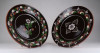 Hibátlan állapotú, jelzett, nagy méretű virágszirom mintás kerámia fazekas munka, akasztási lehetőséggel rendelkező kerámia fali tál párban.