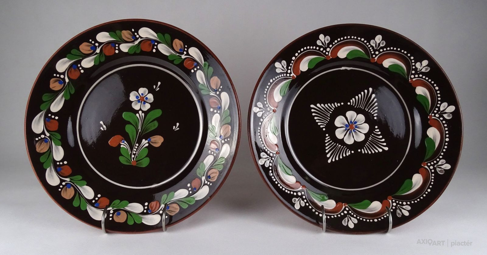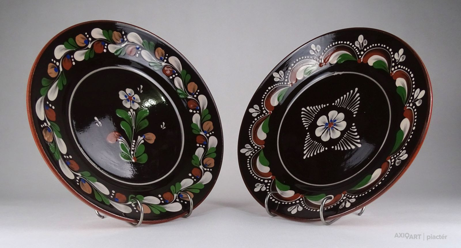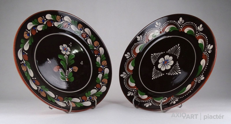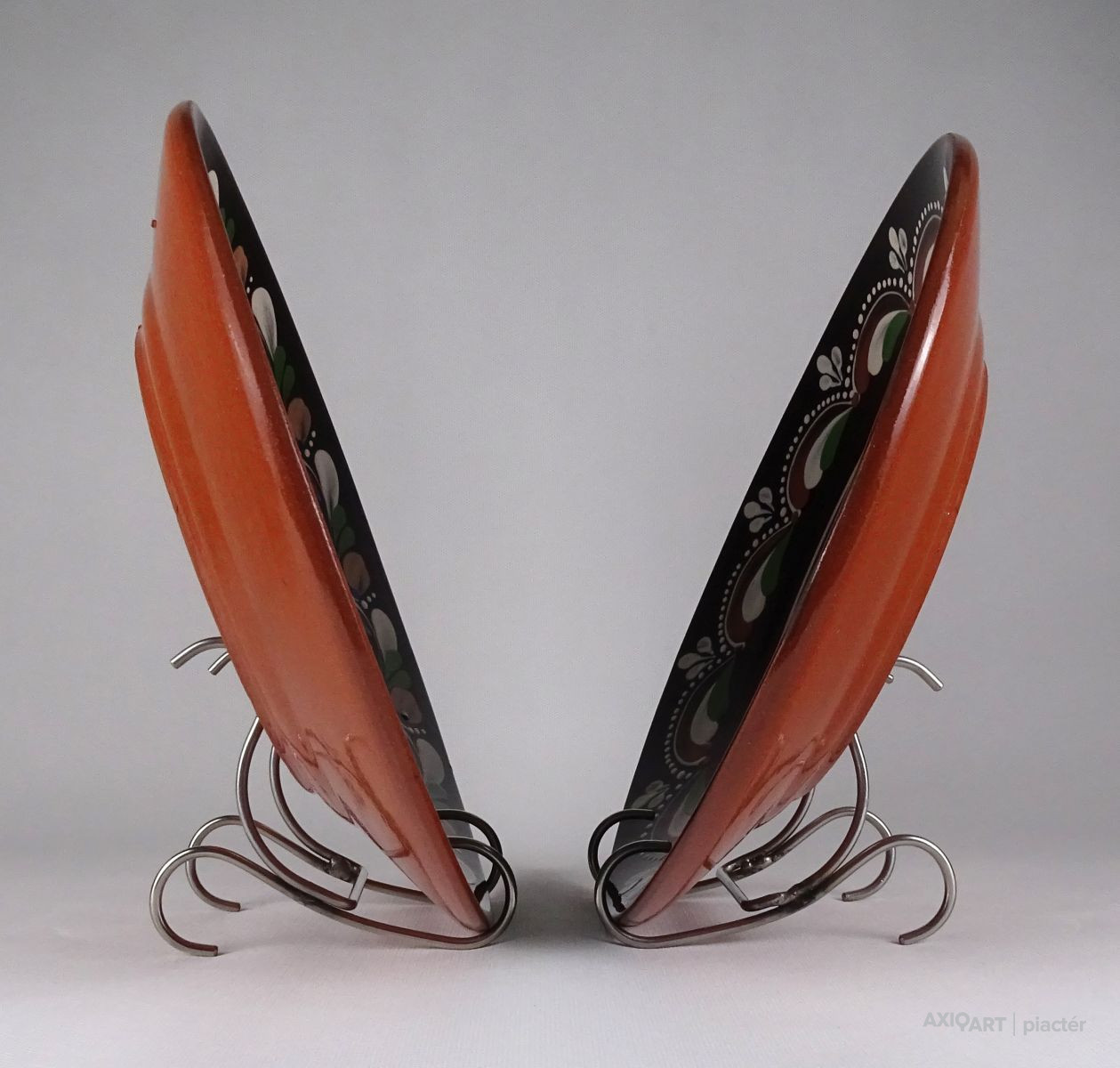 Jelzett sárospataki barna mázas kerámia falitál pár 30 cm