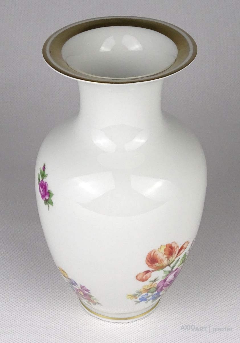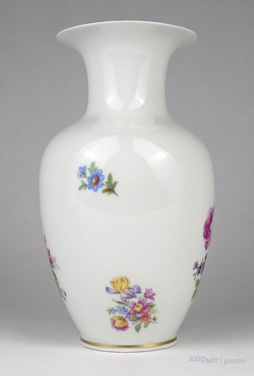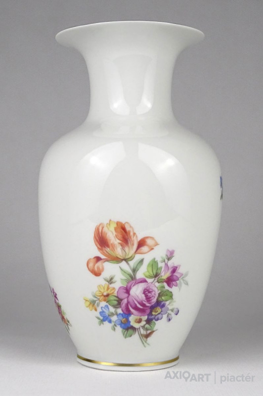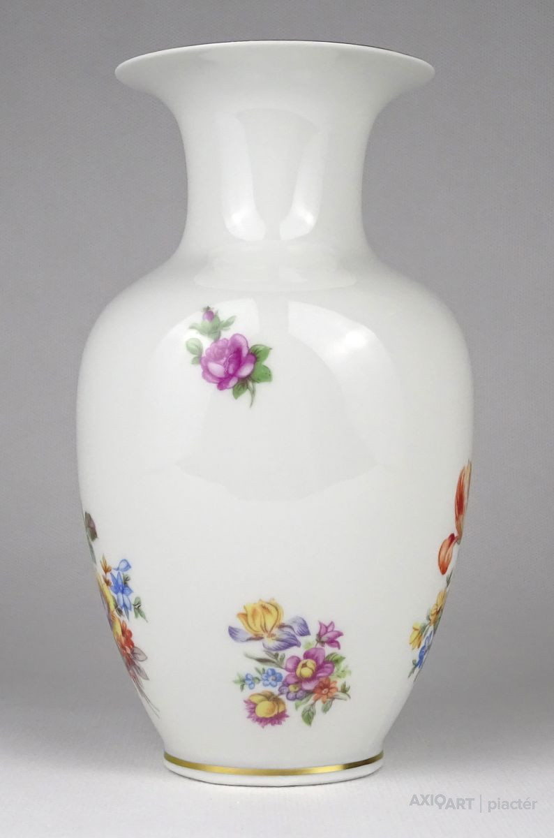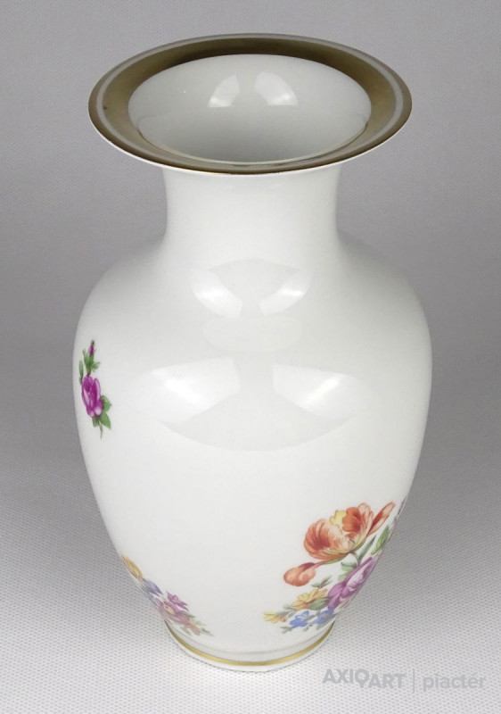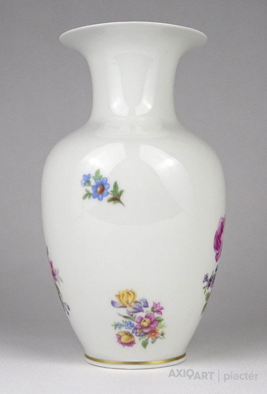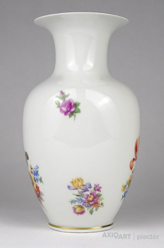Hibátlan állapotú, arany szegélyes porcelán váza, virágváza. Oldalán körben virágokkal díszített.