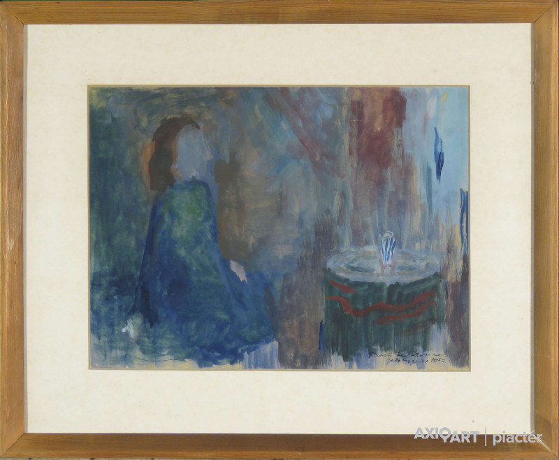 [FKD027/Bp4/60] A kép mérete: 60 x 82 cm keret nélkül. Készült: Olaj, pasztell, Papír (kasírozva) A kép Szabó Zoltán Angyalföldi (Budapest, 1929) alkotása. Jelezve jobbra lent "Szabó Z 73" A festmény jó állapotban van. Keret: Ép Magyar festők és grafikusok életrajzi lexikona I-II. Festő. Rajkai György beszélte rá, hogy jelentkezzék felvételre a Képzőművészeti Főiskolára. 1948-49-ben a Dési Huber-szakkörben rajzolt, festett Gráber Margit vezetésével. 1950-ben jelentkezett a Képzőművészeti Főiskolára, ahol 1951-ben kezdte meg tanulmányait Fónyi Géza, Barcsay Jenő és Domanovszky Endre keze alatt. 1953-54-ben a főiskola megvált tőle, lekerült Tatabányára, ahol a művésznövendékek számára művésztelepet létesítettek. Számos műve kapcsolódik a tatabányai periódushoz, amelynek élményéből még évek múlva is bőven merít. 1955-ben visszakerült a főiskolára, ahol 1958-ban fejezete be tanulmányait. Ezt követően két évig - a Fiatal Művészek Stúdiójának tagjaként - a stúdió műtermében dolgozott. 1960-63 között Derkovits-ösztöndíjban részesült. Kiállító művészként első ízben 1958-ban a VII. Magyar Képzőművészeti Tárlaton szerepelt jelentősebb anyaggal. Ettől kezdve minden nemzeti tárlaton, a Fiatal Képzőművészek Stúdiójának bemutatóin, jelentősebb hazai és külföldön rendezett magyar seregszemléken részt vett alkotásaival (Ernst Múzeum, Műcsarnok, Tiszti Klub Budapest, Veszprém, Szolnok, Tatabánya, Vác, Győr, Kecskemét, Tallin, Berlin, Varsó, Belgrád, Párizs, Moszkva, stb.). Erőteljes formákkal komponált figurális kompozíciókat, portrékat, városképeket, csendéleteket alkotott olajban, pasztellben, szénnel és temperával. A Nyolcak, Nemes Lampért József és a korai Uitz Béla alkotások formai örökségének legrangosabb mai folytatója. A külföldiek közül Siqueiros és D. Rivera gyakoroltak rá nagy hatást, akik leginkább lehetnek expresszív stílusának mintaképei. Szabó végtelen humanizmusa, őszinte hite az alkotásban, a tiszta emberi kapcsolatokban és a szeretetben, az emberi lét himnuszává fokozódik vásznain. Monumentális, óriási lendület jellemzi alakjait, akár táblaképről, szénrajzról, akár monumentális munkáról van szó. Díjak: a Stúdió pályázatának I. díja; Munkácsy-díj; a Szolnoki Festészeti Triennále II. díja; Érdemes Művész. Sok murális alkotást is készített (Sátoraljaújhely, Csongrád, Baja, Bácsalmás, stb.). Alkotásai helyet kaptak a Magyar Nemzeti Galériában, a Legújabbkori Történeti Múzeumban és több vidéki képtárban. (Egri Mária: Szabó Zoltán, MÉ, H.J.: Műv. 1970/8, Műv. 1976/5, A.J.: Műv. 1985/2) Magyar festők és grafikusok életrajzi lexikona I-II. Műgyűjtők és kereskedők kézikönyve Festő. Művészeti tanulmányait a Dési Huber István szakkörben kezdte, ahol Gráber Margit korrigálta. 1950-ben jelentkezett Budapesten, a Képzőművészeti Főiskolára. Fónyi Géza, Barcsay Jenő és Domanovszky Endre voltak a mesterei. Siqueiros és Diego Rivera is nagy hatást gyakoroltak rá, akik leginkább lehetnek expresszív stílusának mintaképei. 1958 óta szerepel hazai és külhoni tárlatokon (Műcsarnok, Ernst Múzeum, stb.). 1960-63 k. Derkovits-ösztöndíjas volt. 1969-ben Munkácsy-díjjal tüntették ki. 1977-ben érdemes művész címet kapott. Végtelen humanizmusa, őszinte hite a munkában, a tiszta emberi kapcsolatokban, a szeretetben, az emberi lét himnuszává fokozódik vásznain. Monumentális, hatalmas lendület jellemzi figuráit, akár táblaképről, szénrajzról akár monumentális műről van szó. Sok murális munkát is készített (Sátoraljaújhely, Csongrád, Baja, Bácsalmás, stb.). A NYOLCAK, Nemes Lampért és a korai Uitz munkák formai örökösének legrangosabb mai folytatója. (MÉ, H.J.: Műv.-1970/8, Műv.-1976/5, A.J.: Műv.-1985/2) Magyar festők és grafikusok adattára Művészeti tanulmányait a Dési Huber szakkörben kezdte, majd 1951-1958-ban Fónyi Géza, Barcsay Jenő és Domanovszky Endre növendéke a főiskolán. 1958-tól minden fontosabb hazai és számos külföldi tárlaton részt vett. Kiállított többek között a Szovjetunióban, Bulgáriában, Jugoszláviában, az NDK-ban, Lengyelországban és Franciaországban. Több vidéki bemutató (Dunaújváros, Szeged, Kecskemét, Szolnok, Győr stb.) mellett 1970-ben az Ernst Múzeumban, 1976-ban a Műcsarnokban jelentkezett gyűjteményes anyaggal. 1976-ban önálló kiállítása volt Tallinban. 1978-ban az Ernst Múzeumban. A Kilencek alapító tagja, és valamennyi kiállításuk résztvevője. 1960-1963-ban a Derkovits-ösztöndíjat, 1969-ben Munkácsy-díjat, 1977-ben érdemes művészi címet kapott. - Művészetében központi helyet foglal el az ember. Végtelen humanizmus, őszinte hite a munkában, a tiszta emberi kapcsolatokban, a szeretetben az emberi lét himnuszává fokozódik vásznain. A Nyolcak formai örökségének legrangosabb mai folytatója. - Irod.: P.Sz.T.: Művész életrajzok. Bp. 1985.; Acsay Judit: Legszívesebben az eget festeném be. Beszélgetés Szabó Zoltánnal. Művészet, 1985. 2. Művészeti lexikon I-IV. Festő. 1951-58 között a Képzőművészeti Főiskolán Fónyi Géza, Barcsay Jenő és Domanovszky Endre tanítványa volt. 1958-tól állítja ki erőteljes formákkal komponált figurális kompozícióit (Almahámozók, Kesztyűs női portré stb.). 1965-ben sgraffitót készített egy sátoraljaújhelyi lakóházra. Művész életrajzok kortárs magyar képzőművészek 1958-ban kapott diplomát Fónyi Géza, Barcsay Jenő és Domanovszky Endre tanítványaként. Azóta minden fontosabb hazai rendezvény résztvevője, gyakorta kiállít külföldön is. Számos vidéki bemutató mellett 1970-ben az Ernst Múzeumban, 1976-ban a Műcsarnokban, 1983-ban a Tihanyi Múzeumban jelentkezett gyűjteménye
