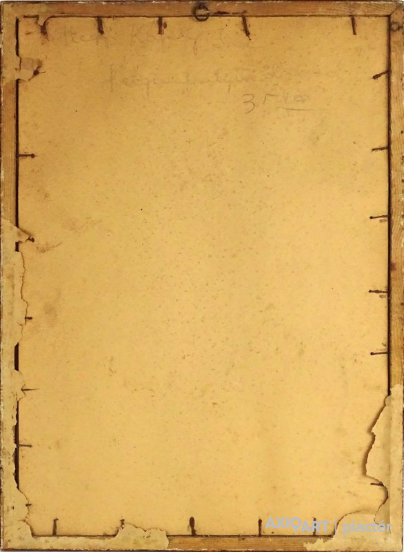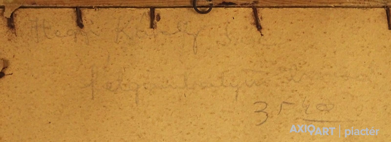 [1Y029/Z018] Olaj farost festmény, üveglap mögött, hibátlan képcsarnokos keretben. Hátoldalán Képcsarnok Vállalat papír címkéje: A művész neve: SCHÉNER MIHÁLY A kép címe: TÁJ Magasság: 66.5 cm Szélesség: 86 cm Súly: 6.54 kg Schéner Mihály festő, grafikus, szobrász, keramikus, bábtervező Medgyesegyháza, 1923-01-9 Elhalálozott: Budapest, 2009. május 11. Honlap: http://www.kormendigaleria.hu/kiadvany.html 1942-1947: Magyar Képzőművészeti Főiskola, tanára: Rudnay Gyula. 1978: Munkácsy-díj; 1984: érdemes művész; 1989: kiváló művész; 1995: Kossuth-díj. 1992-től a Magyar Művészeti Akadémia, 1993-tól a Széchenyi Irodalmi és Művészeti Akadémia tagja. 1956-ig tanított. 1982: Nagyatádi Faszobrász Alkotótelep, 1985: Nemzetközi Acélszobrász Alkotótelep, Dunaújváros. A stílusában felismerhető, mégis sokféle műtárgyat létrehozó ~ gazdag, állandóan alakuló életműve a folyton változó világban helyét kereső, az alkotói szabadságot megvalósító XX. századi képzőművész példázata lehetne. Magát expresszív-szürrealista alkotónak nevezi. Egyaránt dolgozik festékkel, textillel, fával, fémmel. Rajzol, szerkeszt, farag, épít, gyúr, varr és ragaszt, felhasználja a mézesbábok öntőformáit. Festő, rajzoló, textilszobor- és bábkészítő, fazekas, asztalos, esztergályos. Háromlépcsős folyamatban gondolkozik: rajzban tervez, majd fest, szobrot készít, “formába önt”, mindig a végső plasztikai megoldást keresi. Ami állandó és mégis játékosan változékony megjelenésű Schéner művészetében, az a gyermekkori emlékek által meghatározott népi mesterségek iránti tiszteletet kifejező motívumkincs, a tárgyi folklór formakészlete, amely már-már kézjegyként ismétlődik munkáin. Mitologikussá nőtt képzelete új lényeket teremt, pl: a Pigulát, amely disznótestű, emberfejű teremtmény. Schéner festményein a szürrealista motívumokat konstruktív szerkezetbe rendezi, a geometriát és az organikus természeti motívumokat egyaránt beépíti műveibe. A népi, népművészeti formakincsből merített lovas huszárok, betyárok, szegénylegények cifra szűr mentéje, piros csákója, fekete csizmája, az önálló életet élő zsinórdíszek és mézeskalács bábok, a kiskocsik a gyermekkori vásárok, búcsúk színes forgatagába vezet. A primér motívumokat aztán felváltják a vastagon felhordott felületbe karcolt jelek, vonalhálózatok, amelyek a játszó gyermek homokba rajzolt ábráit, a pásztorember fába vésett üzeneteit, az ősember barlang falába rótt mágikus jeleneteit idézik meg. A művész pillanatnyi érdeklődésének megfelelően a színek búvópatakként tűnnek el és jelennek meg ismét. A 60-as években leginkább a formákkal való játék érdekelte, a festmények felülete egyre gazdagodott: a táblaképek felületén applikációk jelentek meg, vagy lemállasztott rétegek hagyták maguk után hiányukat, motívumok nélküli ősformák, archetipikus képzetek bukkantak fel művészetében. A véletlenszerűnek látszó rétegekkel való játék azonban tudatos komponálás eredménye, amely később nyilvánvaló ritmusnak és formai szerkesztettségnek adja át a helyét, mint a Törvénytáblák c. sorozaton. A különböző művészi kifejezési formák egymásra termékenyítő hatással vannak, át- meg áthatják egymást. Textilszobrai, amelyekkel új műfajt teremtett, ugyanazzal az automatikus, expresszív-szürrealista módszerrel készülnek, mint festményei. A hagyományosan a népművészetben alkalmazott anyag, a filc lehetőséget ad a népi formakincs felelevenítésére, amely azonban a művész különös szürrealista átiratában jelenik meg. A szívekkel kivarrt, zsinórdíszes Posztókotlós c. művén mézesbábok lógnak, hátán huszárok lovagolnak. Egész sor textilből készült kéz-plasztikát alkot, amelyeket az ujjakra rávarrt díszekkel öltöztet, személyesít meg. A színes-különös világból aztán ~ újra puritán képi és formai rendbe juttatja el a nézőt, majd nemsokára tépett, gyűrt, vágott, csorgatott, repedezni hagyott szenvedélyesen vonagló képi felületeket hagy hátra. Schéner készített apró gyermekjátékokat, térstruktúra-tereket, mászókákat is. A magyar népi formák mellett szürreális játékaiban gyakran alkalmaz görög mitológiai alakokat, “elkentaurosodott” lovakat, Gorgó-fejeket, sellőket, hárpiákat, Pán-ábrázolásokat. Schéner nemcsak saját művészetéről publikál, hanem művésztársairól is számos írása jelenik meg, elsősorban az Új Auróra c. folyóiratban, amelynek egy ideig főmunkatársa volt. Irodalom kiállítása, Magyar Építőművészet, 1962/4. Húsz év után, Művészet, 1965/4. BOZÓKY M.: ~, Tiszatáj, 1968/5. PERNECZKY G.: Nincs uborkaszezon, Élet és Irodalom, 1969. augusztus 8. BARÁNSZKY-JÓB L.: ~, Művészet, 1969/9. LÁSZLÓ GY.: ~ kaposvári kiállítása, Jelenkor, 1969/4. MAJOR M.: Pásztorok, betyárok, huszárok - kezek, Tükör, 1970. szeptember 15. FRANK J.: Bemutatjuk ~t, Élet és Irodalom, 1972. május 6. ról kiállítása ürügyén, Képzőművészeti Almanach, Budapest, 1972 Sötétkék kokasok, Élet és Irodalom, 1973. szeptember 9. MAJOR M.: ~ játékai, Élet és Irodalom, 1974. július 27. BARTA J.: Egy különös művész, Alföld, 1974/6. VADAS J.: Szárnykészítők, Élet és Irodalom, 1975. október 4. JUHÁSZ F.: A halál ellen játszani, Élet és Irodalom, 1975. május 17. PAP G.: Kincsek és műkincsek, Művészet, 1975/6. P. SZŰCS J.: Az utak kettéválnak, Művészet, 1978/3. Békési művészet, Művészet, 1978/7. SZAMOSI F.: ~ [kismonográfia], Budapest, 1978 VADAS J.: Játék a játékkal, Élet és Irodalom, 1979. augusztus 18. NÉMETH L.: ~ műveiről, Művészet, 1979/4. MIKLÓS P.: Mit akar ez a múzeum?, Művésze