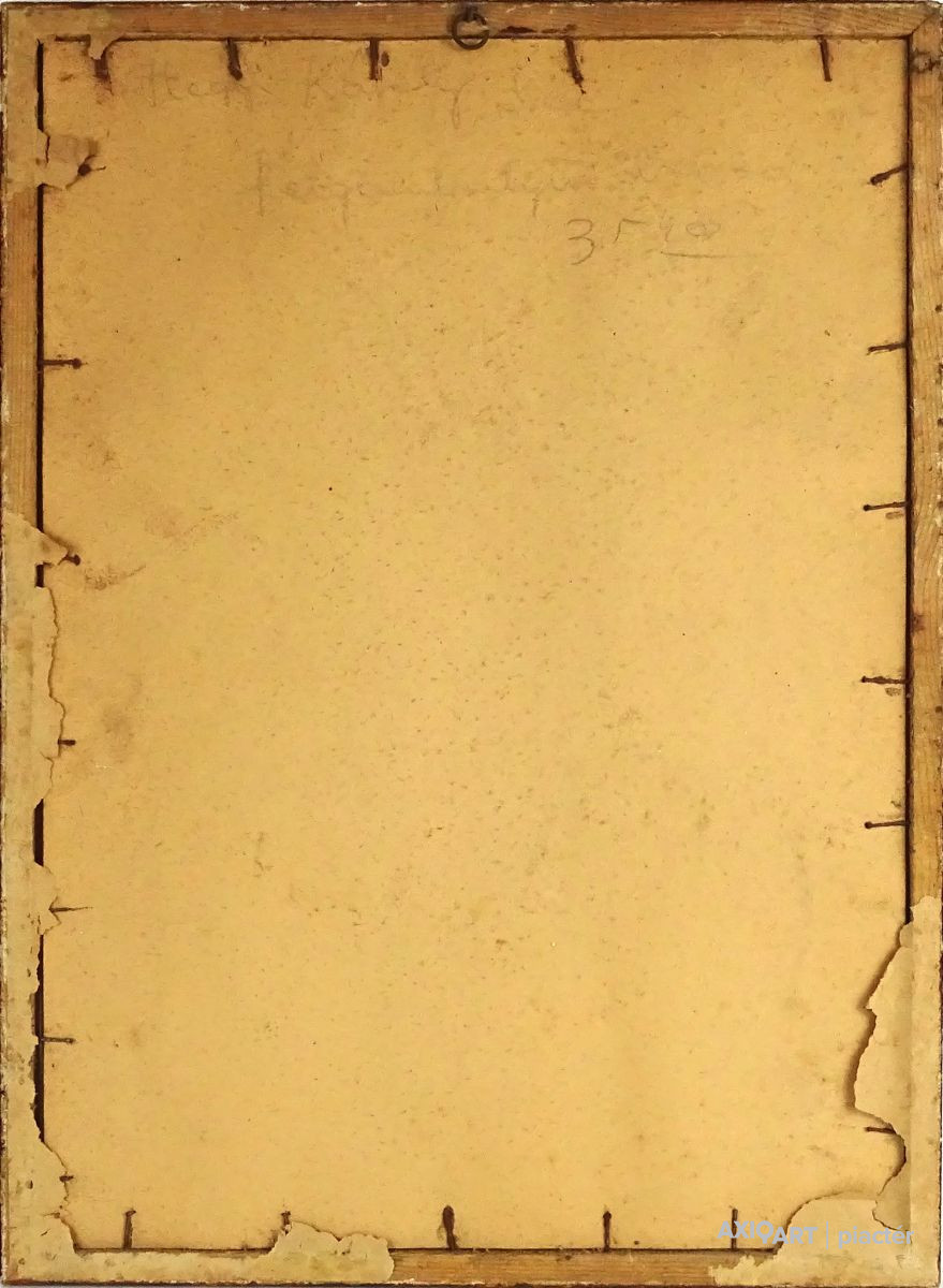 [1Y034/Z018] Olaj vászon festmény, üveglap mögött, szép állapotú képcsarnokos keretben. Akasztási lehetőséggel rendelkezik. Jelezve jobbra lent: Balog A. Hátoldalán a kereten Képcsarnok Vállalat címke töredék látható, rajta felirat: A művészeti alkotás címe: LEÁNY Magasság: 86 cm Szélesség: 66 cm Súly: 5.37 kg Balogh András (képei szignóján az 1960-as évektől Balog) (Budapest, 1919. március 14. — Budapest, 1992. március 18.) festőművész, kerttervező, művészeti szakíró, c. egyetemi tanár. Életpályája és munkássága Apai ágon a géresi Baloghok Szatmár megyéből a dél-erdélyi Alsó-Fehér megyébe származtak, anyai fölmenői a Székelyföldön: Csíkban, ill. Háromszéken éltek. Szülei az 1900-as évek elején költöztek Budapestre. A Képzőművészeti Főiskolán 1937-ben kezdte meg tanulmányait Burghardt Rezső tanítványaként. 1950-töl 1980-ig a Kertészeti Főiskolán (később Kertészeti Egyetem) tanított a kerttervezési tanszéken művészettörténetet, szabadkézi rajzot, ábrázoló geometriát és kertesztétikát. Az Iparművészeti Főiskolán óraadóként kertesztétikát adott elő. 1971-ben részt vett a firenzei Palazzo Strozziban rendezett biennálén, ahol aranyéremmel tüntették ki. Rendszeres önálló és csoportos kiállítások sora következett ezután nemcsak Magyarországon, hanem Olaszország és Németország számtalan városában, kiállított Finnországban, Kanadában is. Egyéni kiállításai gyakran katalógusokkal jelentek meg.[1][2][3] Nyaranként Tihanyban vagy Zsennyén alkotott. Festészetét poétikus realizmus jellemzi, dekoratív elrendezésű kompozíciói és lágy színvilága bensőséges hangulatot, szépséget, harmóniát árasztanak. (Lány egyszarvúval; Alvó, Emberpár és táj, stb.) Nagyon sok tájképet és portrét festett, történelmi személyiségekről is, 1978 és 1989 közt megfestette Mindszenty József bíboros portréját. Képei a Magyar Nemzeti Galériában, vidéki múzeumainkban, olasz, német, finn, észak-amerikai, kanadai, ausztráliai gyűjteményekben vannak.