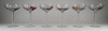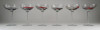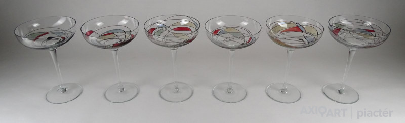 [1P142/X237] Hibátlan állapotú, nagy méretű talpas pezsgős vagy koktélos pohár készlet, elegáns forma. Hat darabos gyönyörű készlet, oldalán kézzel festett, csorgatott, Miro festményeire hajazó modern festett díszítéssel. Magasság: 18.5 cm Szélesség: 12.2 cm Súly: 1.285 kg