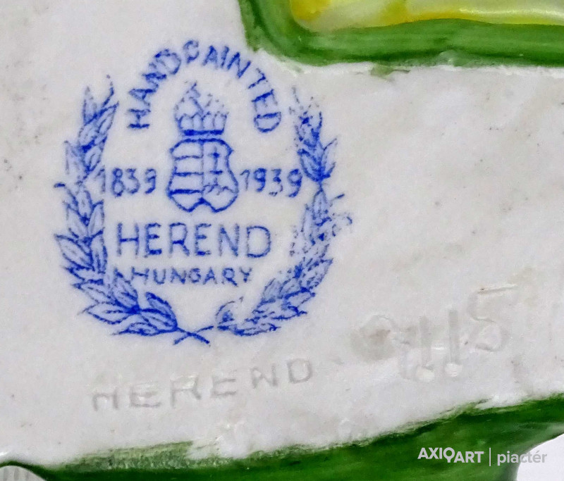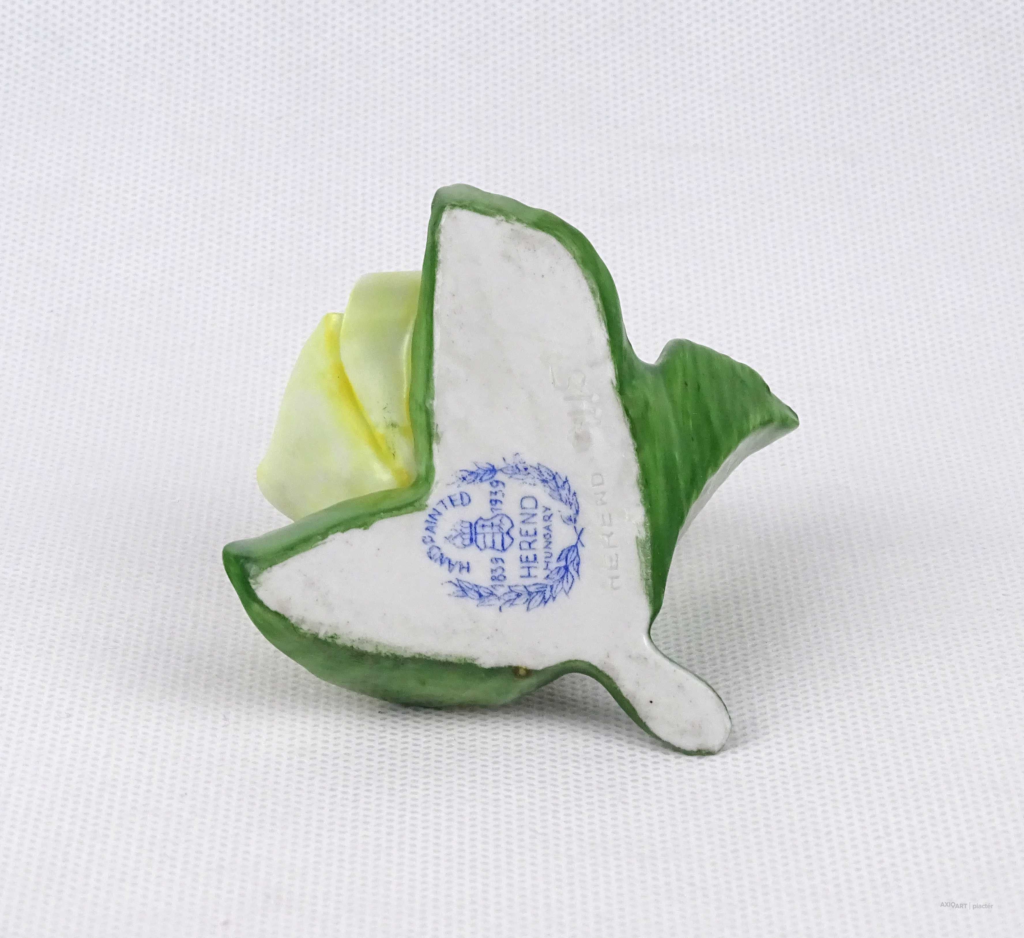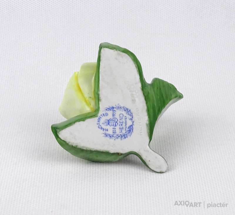 [1V062/Z022] Régi, hibátlan állapotú, jelzett Herendi porcelán virág. Alján kék színű jubileumi Herendi márkajelzés: HANDPAINTED 1839 - 1939 HEREND HUNGARY Mélynyomással: HEREND Formaszám: 9115 Magasság: 4.5 cm Szélesség: 7 cm Hosszúság: 6.5 cm Súly: 0.055 kg