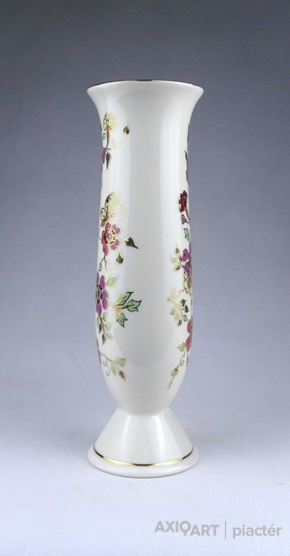 Vajszínű virágmintás karcsú Zsolnay porcelán váza 20 cm