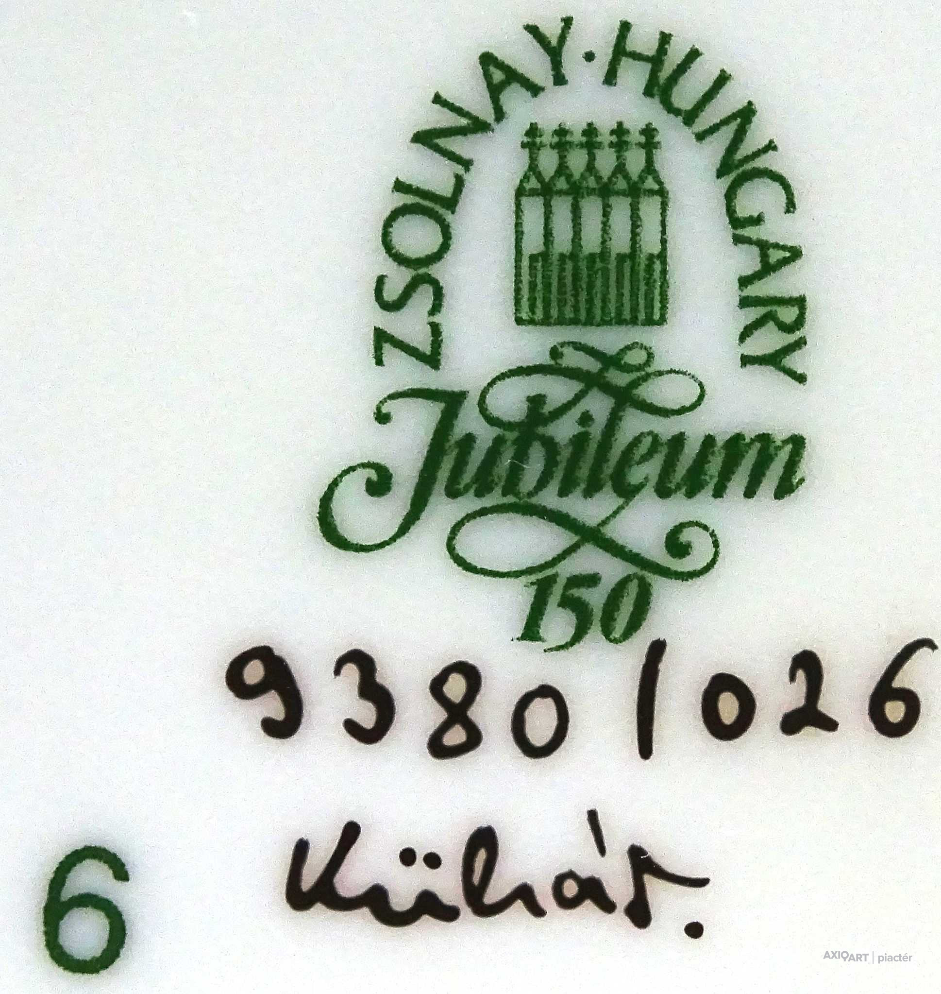 Alján zöld Zsolnay öttornyú jubileumi márkajelzés: