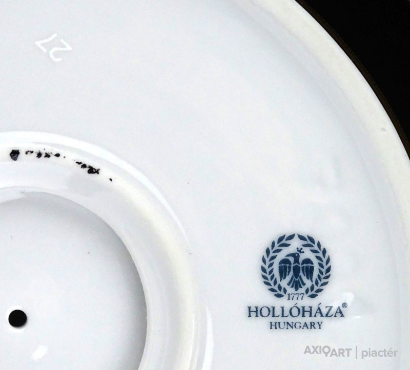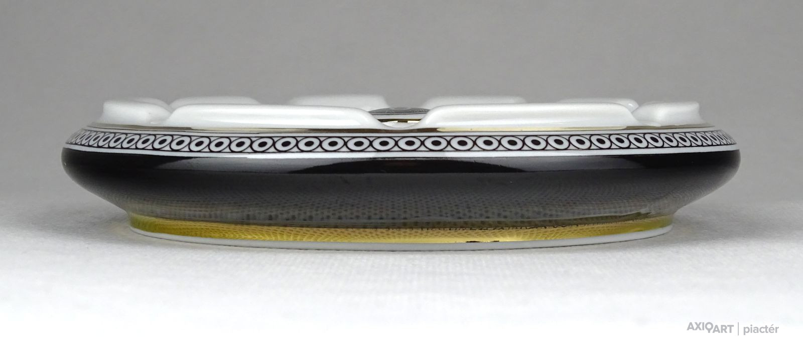 Hibátlan állapotú, Hollóházi porcelán hamutál. Közepében két kalapos úrhölgy Jurcsák László tervei szerint.