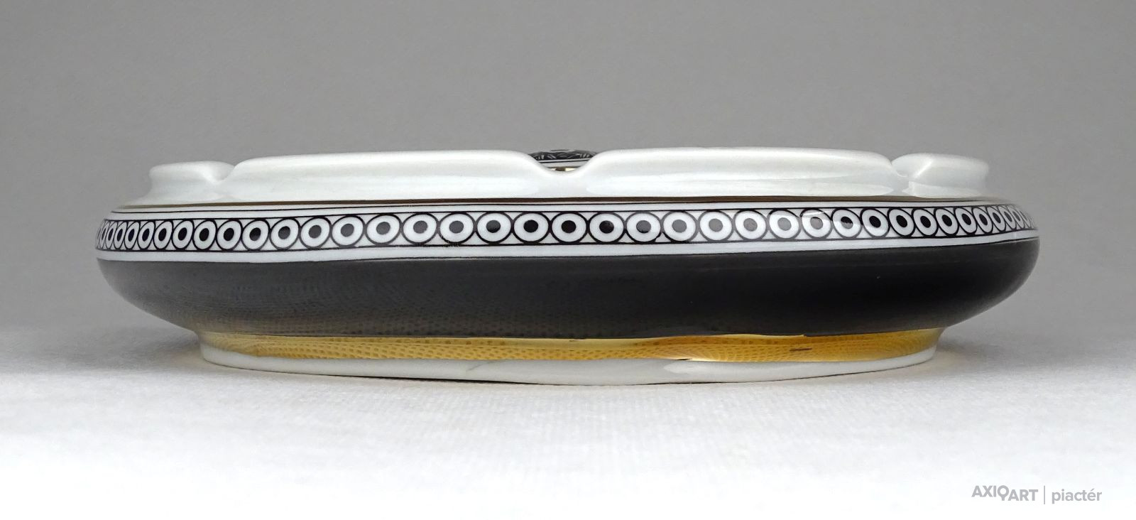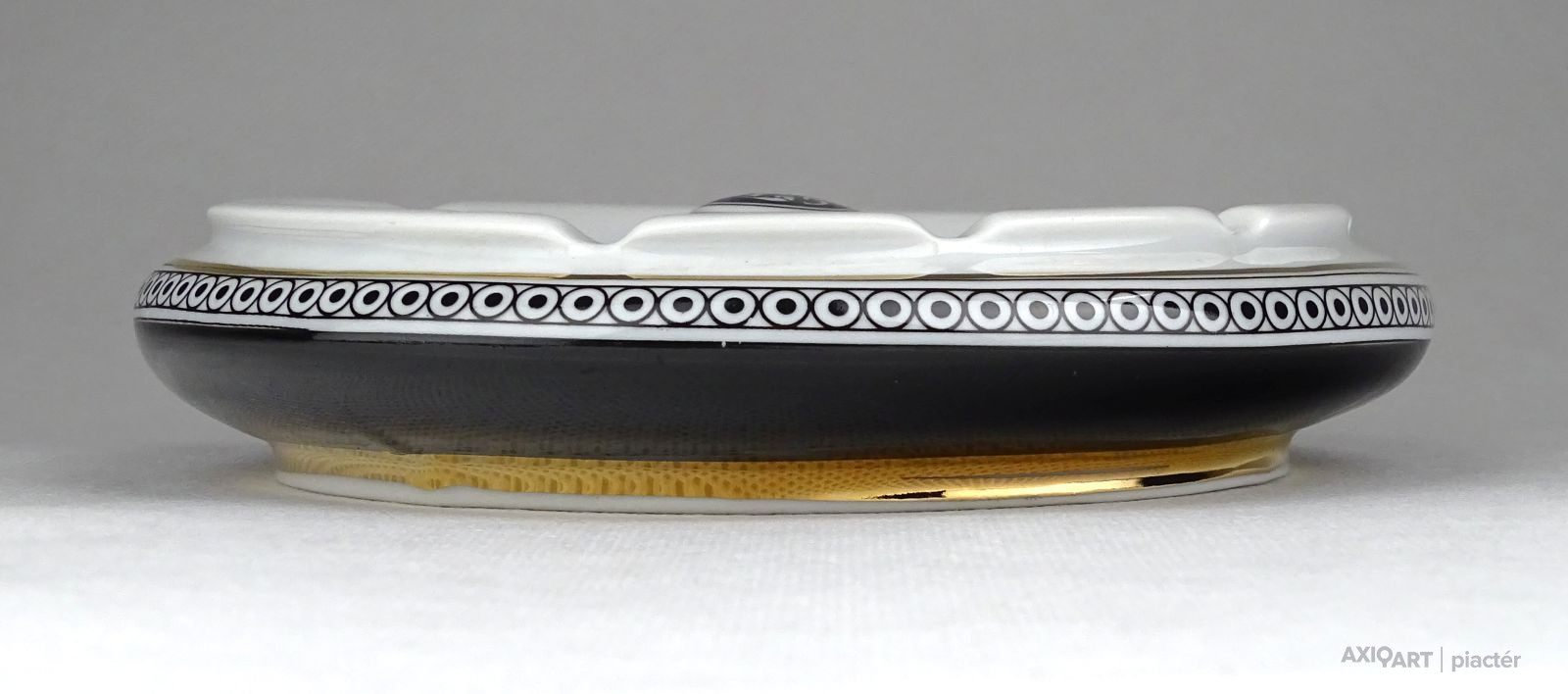 Hibátlan állapotú, Hollóházi porcelán hamutál. Közepében két kalapos úrhölgy Jurcsák László tervei szerint.