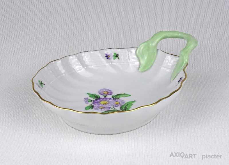 Hibátlan állapotú, virágmintás, füles, kagyló alakú Herendi porcelán tálka.