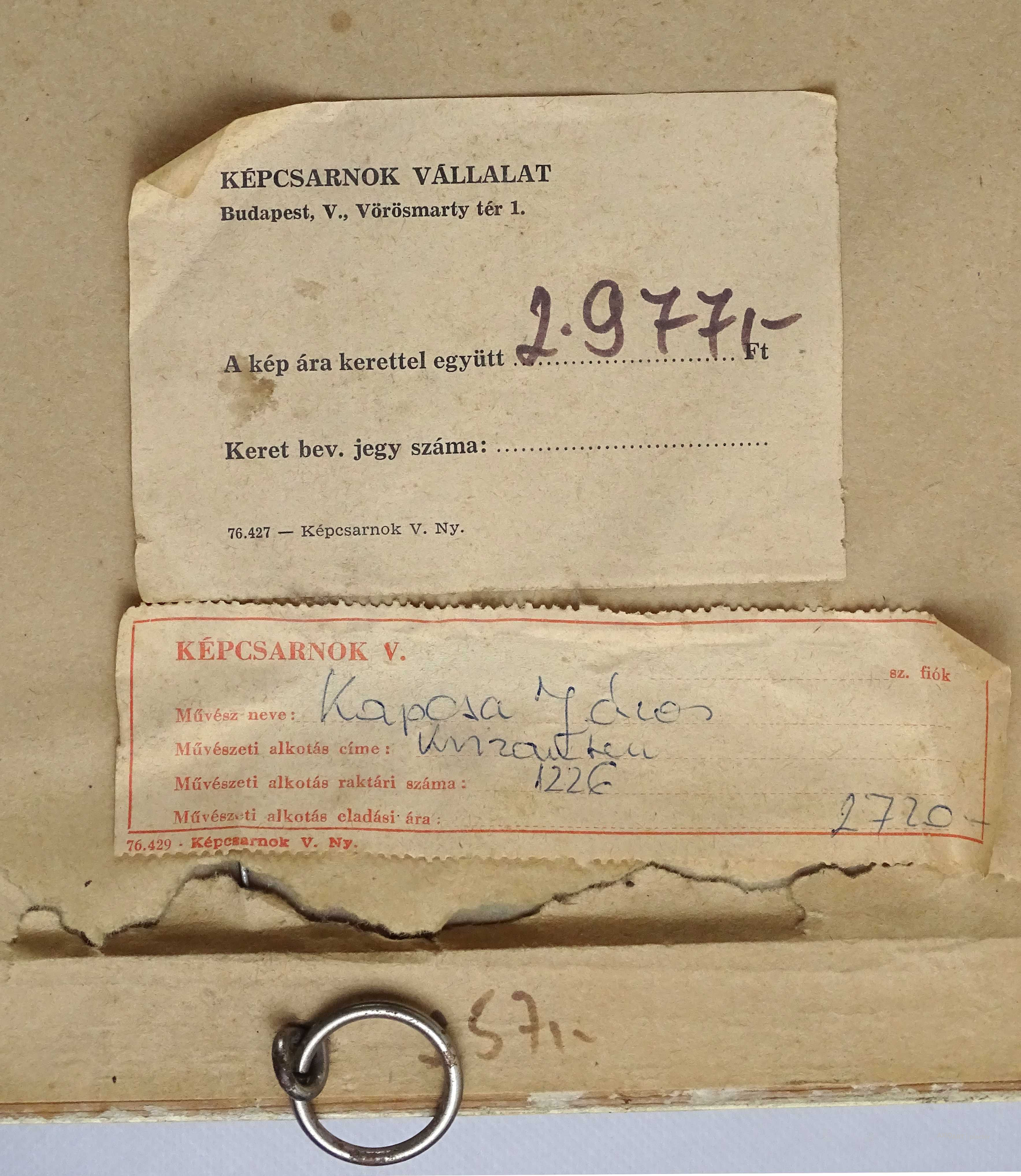 Hátoldalán Képcsarnokos papírcímke:
