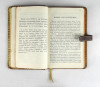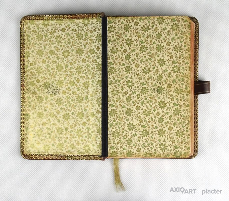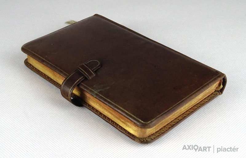Bőr kötéses, aranyozott lapélekkel rendelkező antik könyv, imakönyv.