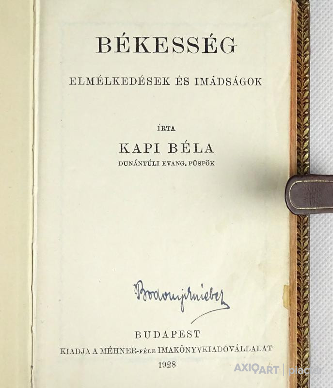 Kapi Béla : Békesség 1928 bőrkötéses imakönyv