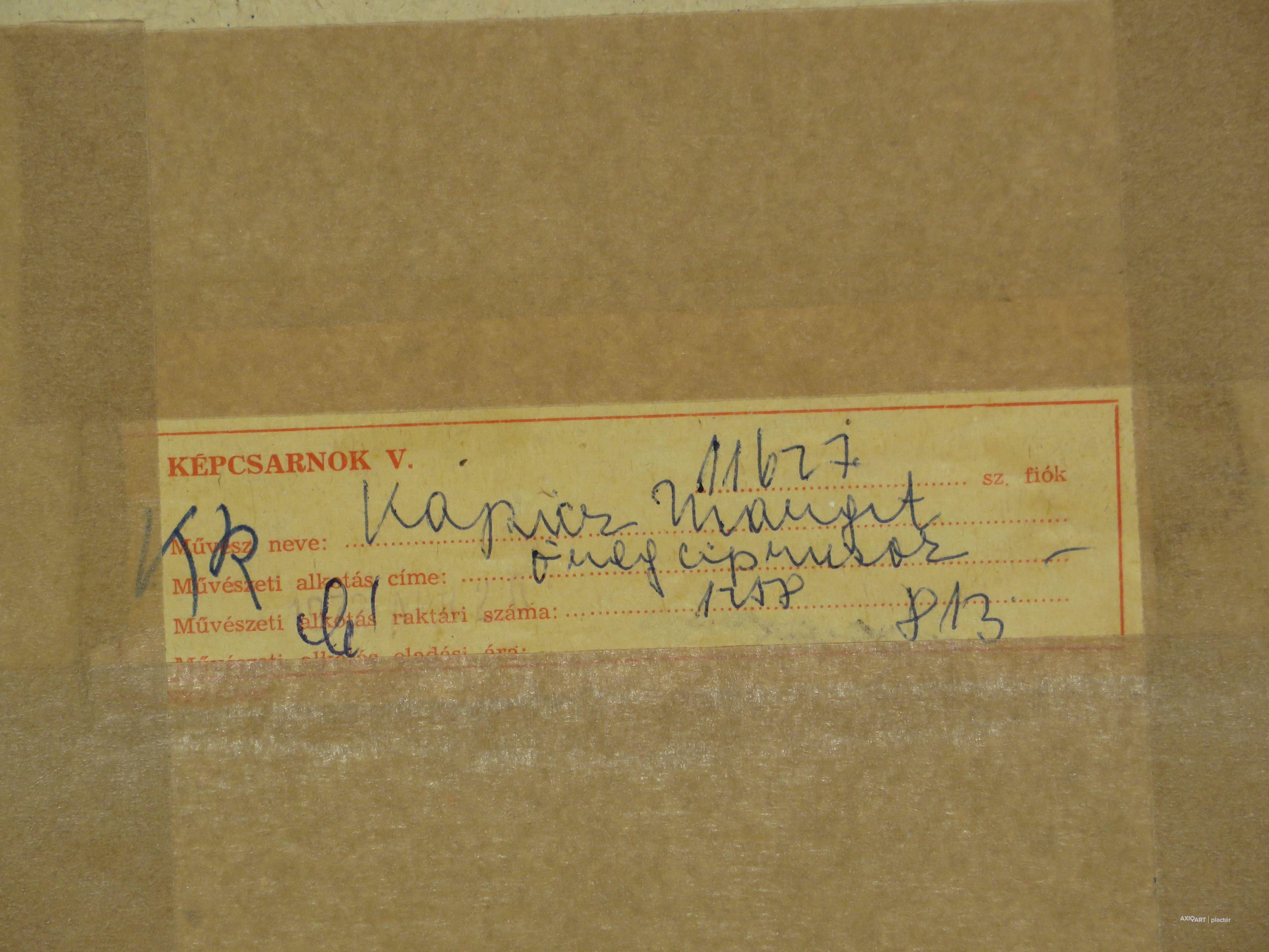 A festmény hátoldalán a Képcsarnok Vállalat raglapja található.