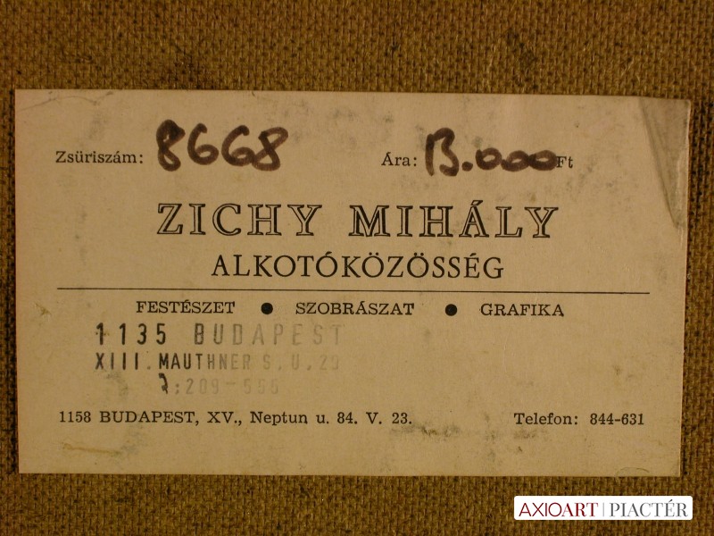 A festmény hátoldalán Zichy Mihály alkotóközösségi címke található.